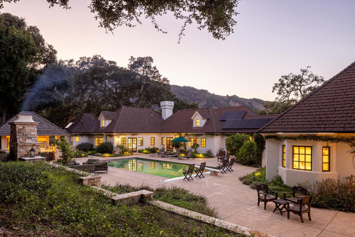 Tucked away in Carmel Valley's peaceful Sleepy Hollow neighborhood, this gated French Country estate provides spacious luxury living just a few minutes from The Village's incredible selection of restaurants, shops, and tasting rooms. With two gated entries, this private retreat provides serenity and comfort with beautiful character and all the modern amenities you could ask for. Highlights include a stunning back patio with pool and covered outdoor kitchen area, an expansive front yard with rolling hills, mature oaks, and a fenced garden, a 3-car garage, gorgeous refinished maple hardwood floors, gourmet kitchen, living room with fireplace, formal dining room, family room, office, and a luxurious primary suite with soaking tub. With the beautiful views of the Santa Lucia mountain ranges surrounding, this timeless Carmel Valley estate is ready to welcome home its loving new owners to enjoy for years to come.