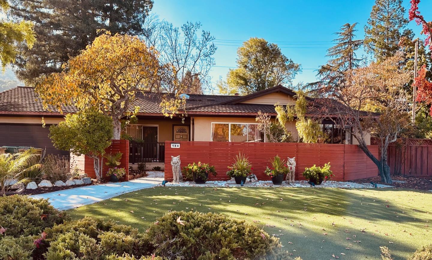 Majestic trees invite you to one of Silicon Valley's most beautiful hillside neighborhoods, Belwood offers a wonderful community experience with rolling hills, walking trails to City views, and Community pool area. 184 Belvue features a corner lot that is arguably one of the best lots in the Community. Move right in to this fully updated beautiful home! Relax and unwind in the resort-like rear yard with gorgeous redwood trees, a variety of natural living spaces, large decking areas and a garden path leading to mini vineyard. Inside you'll find a wonderful open, family floor plan with lots of natural light, a large living room looking out to a quaint front patio. Formal dining room with large farmhouse doors. A large, bright kitchen with skylight, stainless steel appliances, quartz counter tops, and island bar which looks onto the family room featuring high ceilings, a gas fireplace and gorgeous backyard access and views. Large Main Suite with newly remodeled bath. Tesla battery power ready. Go hiking in the hills close by. Enjoy the lovely Belgatos park only a short walk away. Close to downtown Los Gatos, excellent neighborhood schools, and a perfect location to call home.
