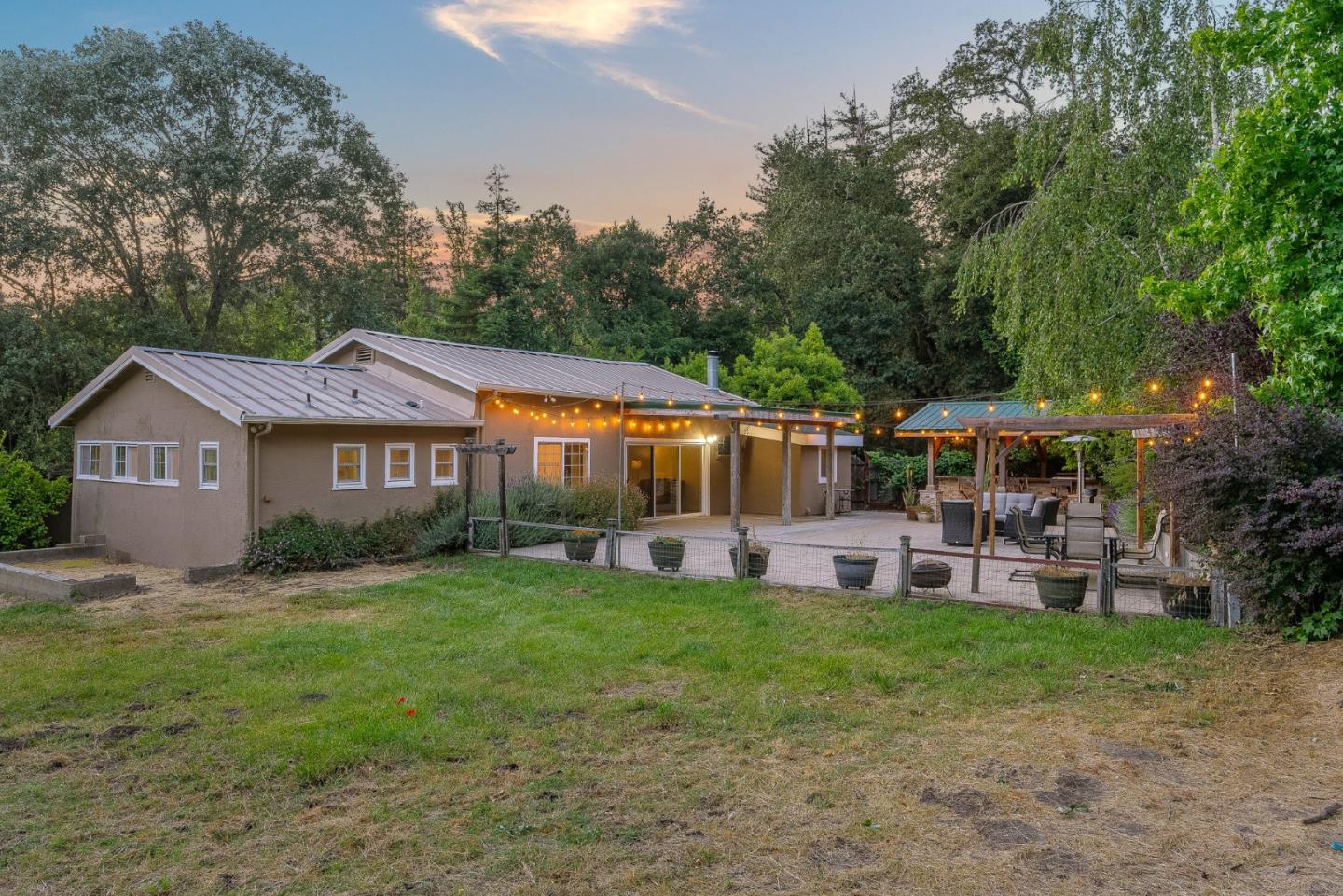 100 Zayante School Road has it all! This incredible single level home is the total package. Flat, sunny, fully usable lot with more than a half acre to create your own mini farm/homestead. Tons of parking with room for RV's, boats, and over sized vehicles. Inside there are 3 comfortable bedrooms including a private primary bedroom with en-suite bathroom. To top it off there's also an office, and a bonus space that could be an ideal pantry, secondary unit, or separate living space. The seamless flow between indoor and outdoor living is accentuated by an incredible resort-like patio area complete with covered seating areas, a luxurious outdoor kitchen, and the perfect place for your hot tub. Live like you're on vacation every day! In addition to SLV water service there is your own private well that's used for irrigating the multiple garden areas and orchard! Easily accessible with no winding mountain roads to navigate make this the quintessential close in country location.