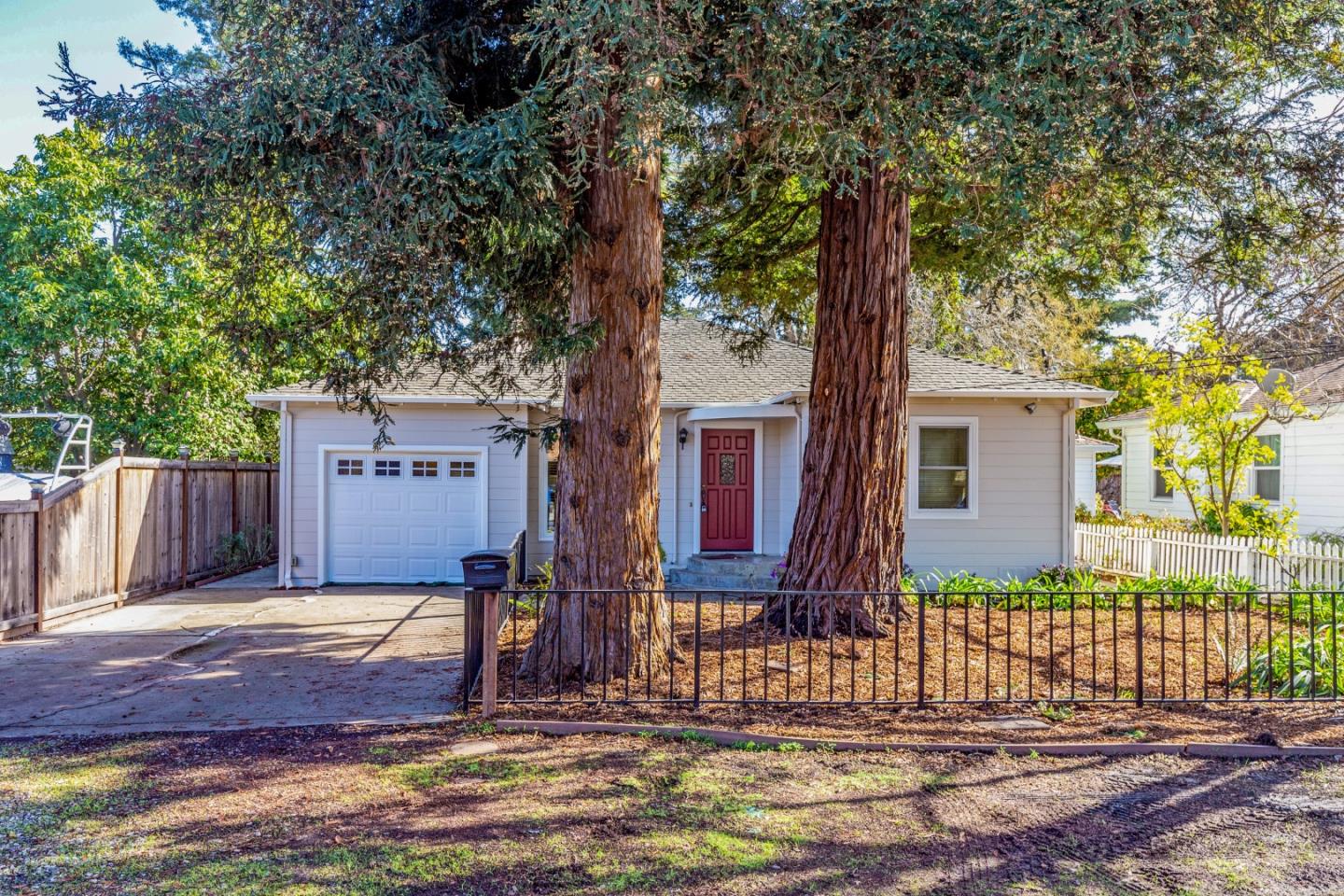 This delightful well maintained home features an open living room and dining room, a previously updated kitchen that leads to a sun room, two spacious bedrooms, and a large updated hall bathroom. Recent improvements include: refinished hardwood floors throughout, new baseboards, new luxury vinyl tile in the kitchen and bathroom, new paint- inside and outside. 2 magnificent redwood trees grace the front and you will find an abundance of fruit trees in the side and back yards- 5 kinds of citrus as well as plum, loquat, and fig. The sun room brings the entire yard in and leads out to a delightful patio with pavers for outdoor enjoyment. There is also a gardener's shed, and another patio in the yard. Conveniently located on a not-a-through street in the North Fair Oaks neighborhood, you are close to local shopping and restaurants, downtown Menlo Park, Stanford Shopping Center, parks, and commute routes.