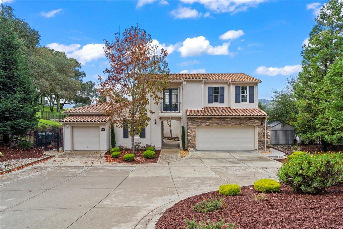 Beautifully updated home on desirable and spacious Olea Court cul de sac in Bridlewood at Country Estates. This over 1 1/4 acre lot backs to Day Valley and offers incredible privacy and stunning pastoral views. Deer and grazing cows can be seen from the LR, DR, FR and primary suite and the entire rear of the lot. Enjoy a forest of oak and redwood trees and ample extra on lot parking. A pool and spa with soothing waterfalls also views Day Valley. The attractive floor plan has a bedroom and ensuite bath downstairs and a flex space upstairs for an office, theater room or game room. New great looking durable LVP flooring flows through all downstairs living spaces and there are newer LED lighting fixtures throughout. The kitchen is very large and updated with natural stone quartzite counters and two islands for all of your cooking or baking. There is bar seating, casual dining space, a pantry, a Bosch gas cooktop & Kitchen Aid double ovens. The kitchen is open to the FR with fireplace & forms the heart of the home. A formal LR with fireplace is adjacent to a formal DR. The primary suite is your retreat; double vanities, jetted tub & double door shower with large walk in closet. One 2 car garage, wired for 240V, 60 amp electric vehicle charging & a separate single car garage