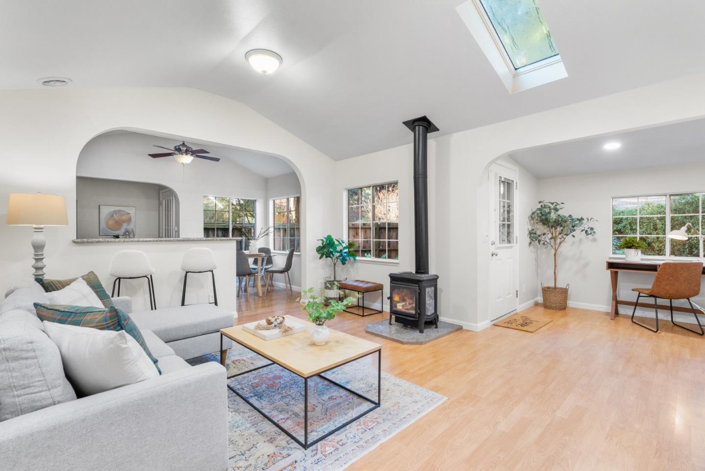 Nestled amidst the towering redwoods of Ben Lomond lies a charming single-level haven, where every detail whispers tranquility and possibility. Bathed in natural light pouring in from numerous skylights scattered throughout, the interior exudes a sense of warmth and openness, inviting you to unwind and embrace the serenity of your surroundings. The vaulted ceilings add to the openness and functionality. Relax and soak in your Jacuzzi tub. Built-in cabinets provide even more storage options leaving your living spaces uncluttered and serene. The screened-in porch offers breathtaking views of the surrounding redwoods. The spacious yard is a canvas of endless possibilities awaiting your creative touch. Storage options are plentiful with three sheds and under house storage offering ample space to stow away belongings. The coveted Tesla Powerwall backup battery system ensures that your home remains powered and your appliances running smoothly, allowing you to weather any storm with grace and ease. Located just moments away from the shops and restaurants of downtown Ben Lomond, this property offers the perfect blend of seclusion and convenience, allowing you to enjoy the best of both worlds and is sure to leave you feeling rejuvenated and inspired.