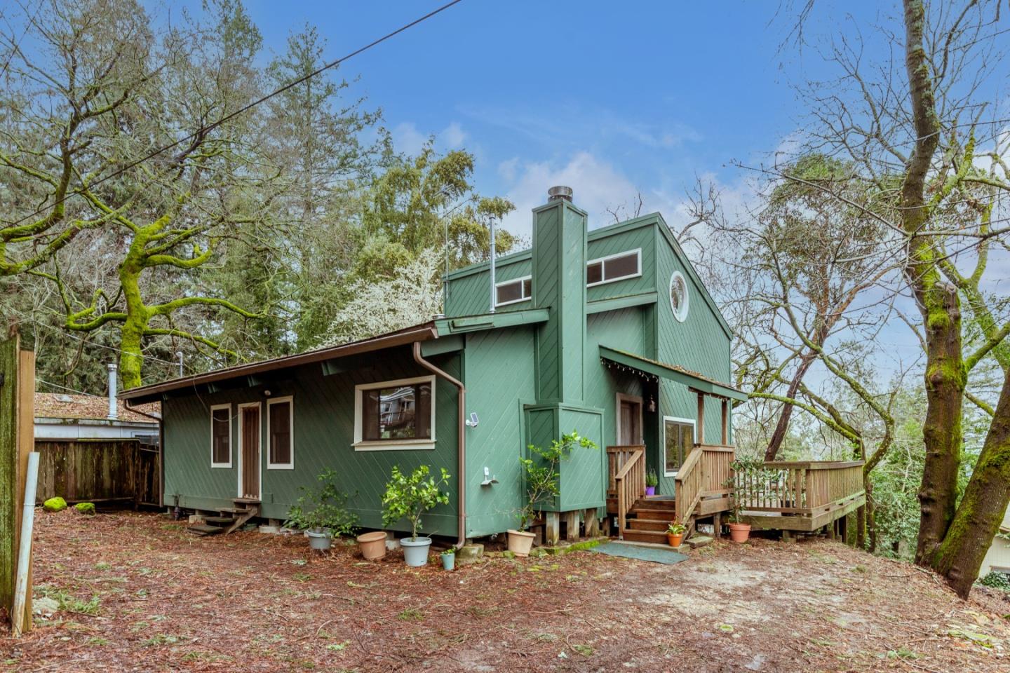 Nestled in the serene Redwood Estates community, this charming home offers a tranquil retreat close to nature. Step into the inviting living room with maple flooring, exposed wood ceiling, and a slider that opens to a deck with a peaceful view through the redwoods. The kitchen features vaulted wood ceiling with exposed wood beams, a 5-burner gas oven range, and a cozy fireplace insert. The primary bedroom boasts a vaulted wood ceiling, while the primary bath offers rock flooring and opens to the backyard. A bonus room with a stacked washer and dryer and a spacious attic offers ample storage. Take the circular staircase to the 2nd story where you will find a loft style bedroom complete with a half bath and large storage room. Outside, an expansive deck provides a perfect spot for entertaining or simply savoring the surroundings. Located just above the village center, with Italian Cafe, post office and store, Redwood estates has a brand new fire station, community center, pool and 2 playgrounds. San Jose water, Comcast internet. Hiking and biking nearby. Great Los Gatos Schools: Lexington Elementary (International Baccalaureate programme) Fisher Middle and Los Gatos High School. 10 minutes to downtown Los Gatos, fantastic commute location in tranquil existence.