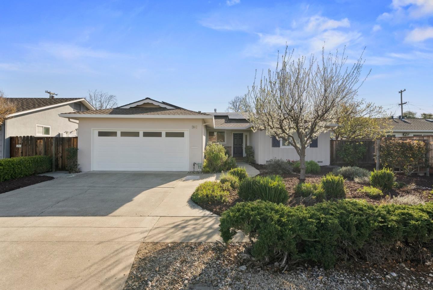 Come and see this beautiful, well-maintained, single-story home with an excellent floorplan and an abundance of natural light throughout! Nicely upgraded kitchen with custom cabinets, granite counters, and stainless steel appliances. Spacious dining area leads to family room, a perfect setup for dining and entertaining. Formal living room is flooded with natural light from the expansive skylight above, complete with gas fireplace and two sliding doors accessing the backyard. Bedrooms situated along one wing of home. Spacious primary suite featuring a walk-in closet, and sliding door access to backyard. Nicely upgraded primary bath with stone counters, tile floor, and step-in shower with glass enclosure. Upgraded hall bath with a double sink vanity, tub shower and tile flooring. Laundry room and attached garage w/EV charger. Partially covered patio in backyard provides shade from the afternoon sun. Lawn and garden area to nurture your green thumb. Delicious fruit trees incl. orange, lemon, apricot, fig, & plum! Beautiful front yard thoughtfully landscaped with drought tolerant plants for easy maintenance. Excellent location, top-rated Cupertino schools! Walking distance to Ortega Park and Stocklmeir Elementary. Close to downtown Sunnyvale, farmer's markets, and nearby shopping.