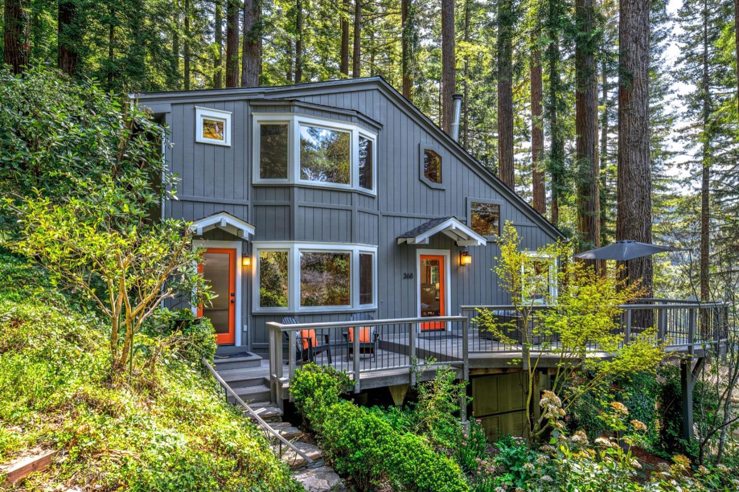 Enjoy the relaxing ambiance of this custom home located in the redwoods above Woodside. This beautiful residence and its' surrounding garden is a perfect place for tranquility. Tastefully updated, home rests on .88 acres. Natural illumination from large windows & skylights flood the home in beautiful light. An open concept main level floor plan creates gathering areas that connect seamlessly to the chef-inspired kitchen featuring a suite of stainless appliances including a 48" Thermador range. Harwood floors run throughout the 2 level home & high, open beam ceilings accentuate this outstanding residence. There is an en-suite bedroom on the main floor, 3 additional bedrooms on the 2nd floor along with a stunning bath. A spacious family room, separate mudroom, laundry & surrounding decks are all additional features of this hi end home that is surrounded by a beautiful garden. Charming separate Artist studio, large decks, basement, storage sheds too. Seller is the Agent .DISCLOSURES AT ...https://app.disclosures.io/link/368-Ridge-Road-ulp04l2i