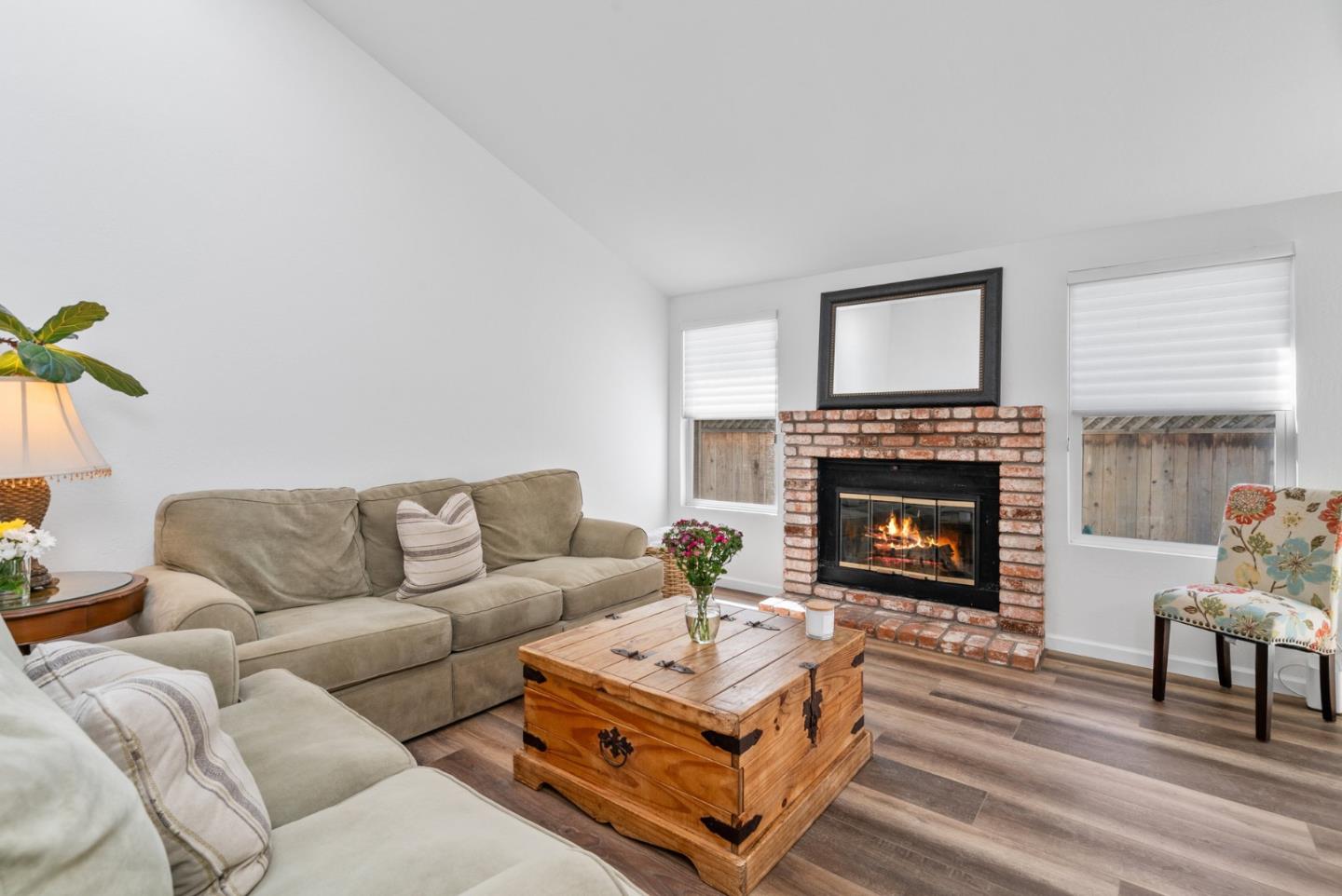 Move-in ready, unique, spacious townhome in a small, neighborly, 10-unit complex. This 2-bed/2-bath home lives much like a single family residency. The generously sized attached 2-car garage, single story status, and only one shared wall with the neighbor gives you a sense of privacy and tranquility. There is a plethora of special amenities including high ceilings throughout with vaulted ceilings in the living room, luxury vinyl flooring, ample storage, and a freshly painted interior. The sunny and serene backyard is a gardeners delight with irrigation, multiple fruit trees, planter boxes, and lots of afternoon sun. The beautiful outdoor space is great for kids, dogs and entertaining. This home is situated in a very convenient location being close to schools, shopping, and biking distance to the beach. For commuters, there is easy access to Hwy 1 while being far enough away to keep road noise to a minimum. Homes in this complex rarely come up for sale, come see this one before it is no longer available.