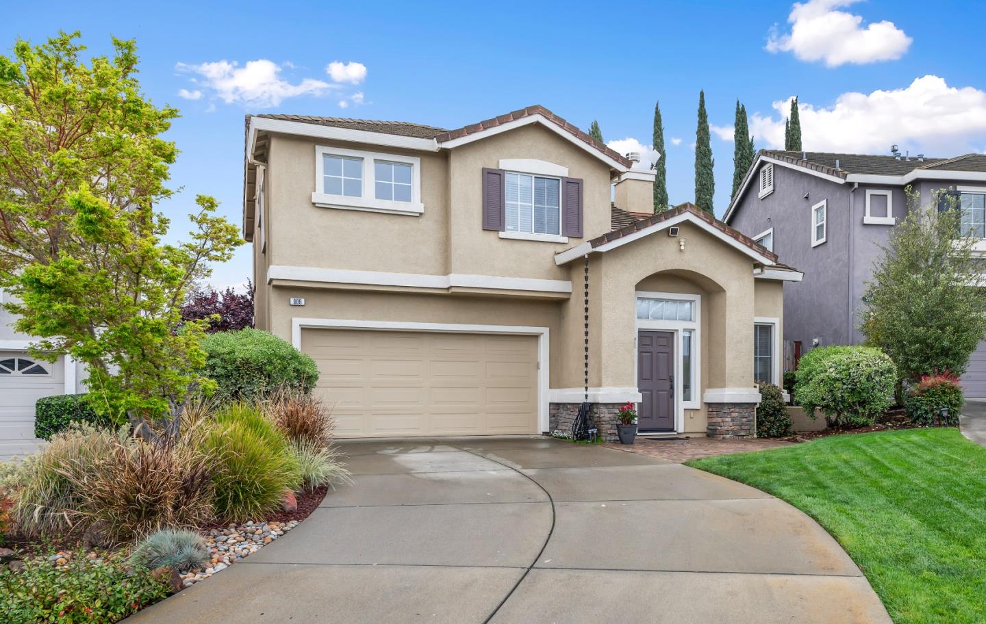 Lavish living in this spacious 4 bedroom 2.5 bath home in desirable community. Office loft is 4th bedroom. If you enjoy sunshine, you will love living here! Abundant natural light all day shining through dual pane windows with window treatments. Vaulted ceiling makes for light, airy and welcoming entrance into the living room. Easy to care for laminate flooring with updated baseboards, trim & interior solid core doors. Chef's kitchen has stainless steel appliances, honed granite counter, gas range, soft close cabinet doors and drawers. Enjoy close access to the private low maintenance landscaped backyard for entertaining, bbq & relaxing. Family room off kitchen has remote control electric fireplace and wine fridge. Meticulously well maintained home with attention to detail on the remodel. Dual AC/heating zones and owned solar panels. Bedrooms and laundry closet are upstairs. Primary ensuite has luxurious bathroom with dual sinks, granite, large tub, pebble floor shower and large walk-in custom cabinet closet. Generous upstairs hall cabinet with glass doors. Recessed lights and crown molding throughout. Plenty of storage in garage and shed. Convenient to restaurants, shopping, grocery stores, biking/walking trail and highways. Move in Ready. Come make this your Dream Home!