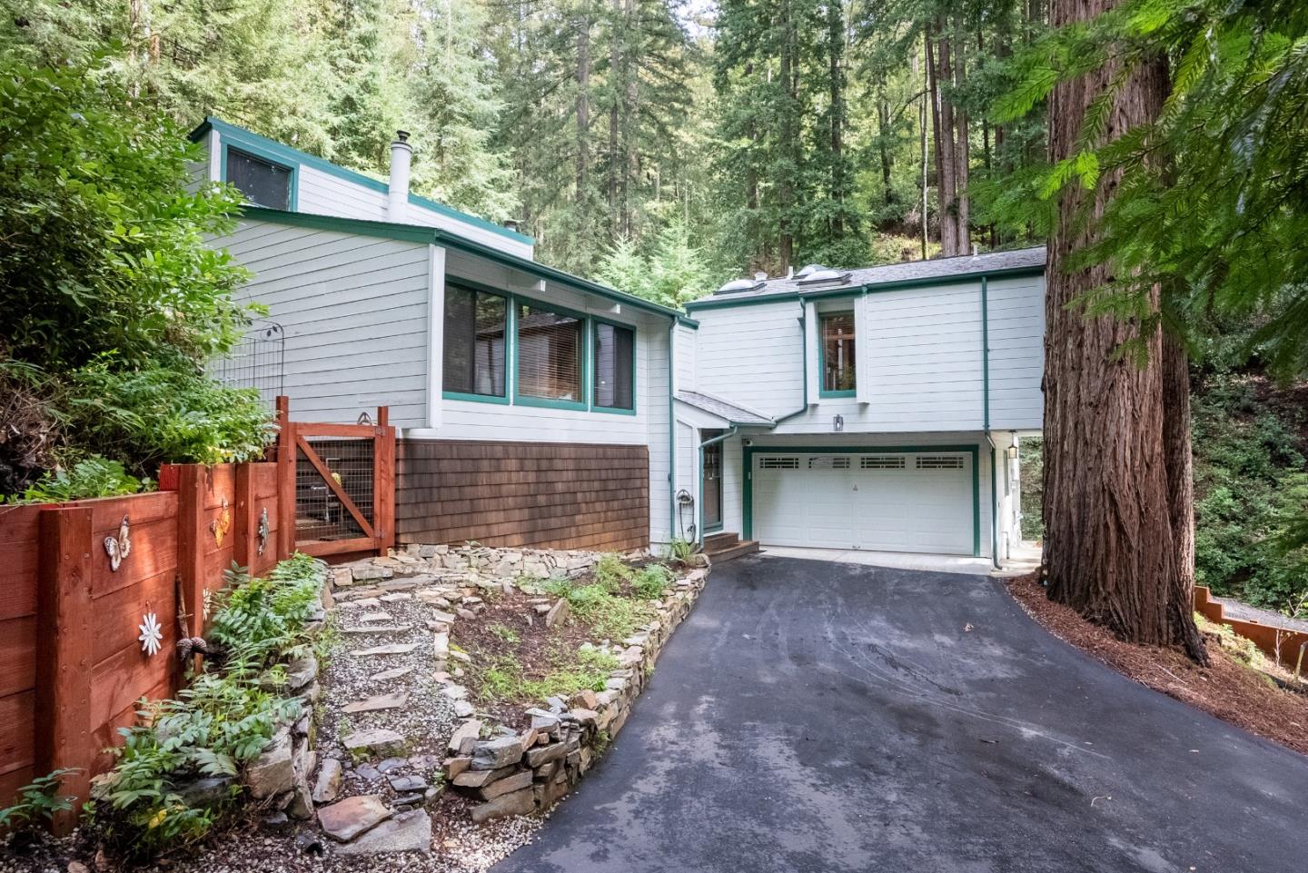 Feel the reminiscence of Tahoe as you drive up to a enchanting Chalet-style home. Ridgeview Estates neighborhood combines rustic charm w/ modern convenience and quick access to Saratoga, the Bay Area and Santa Cruz. When you arrive find abundant parking with a two-car garage, extra spaces on a sprawling 1.149-acre lot. Unparalleled privacy in surrounding redwoods and outdoor areas all create an idyllic sanctuary. Stunning home with over 1,500 SQ FT of living and bonus spaces for tranquility that meets convenience seamlessly. Rustic Elegance: Enjoy warm redwood accent walls. Two fireplaces create a cozy environment in open living/dining room. Wood beamed high ceilings, wood and slate flooring. Modern Conveniences: Upgraded kitchen- large island with granite counters, sunroom off kitchen, spa-like baths, dog door to outdoor deck. Primary suite on upper level. Work from home in downstairs large bonus room. Beautiful Grounds: Nature awaits... Spacious deck, Swim Spa w terraced entertainment decking, storage sheds and a guest cottage. There is so much more... While the residence offers a retreat from city life, it doesn't compromise access leading to Big Basin, Silicon Valley, Downtown Boulder Creek, Scotts Valley & Santa Cruz. This property is one to not miss!