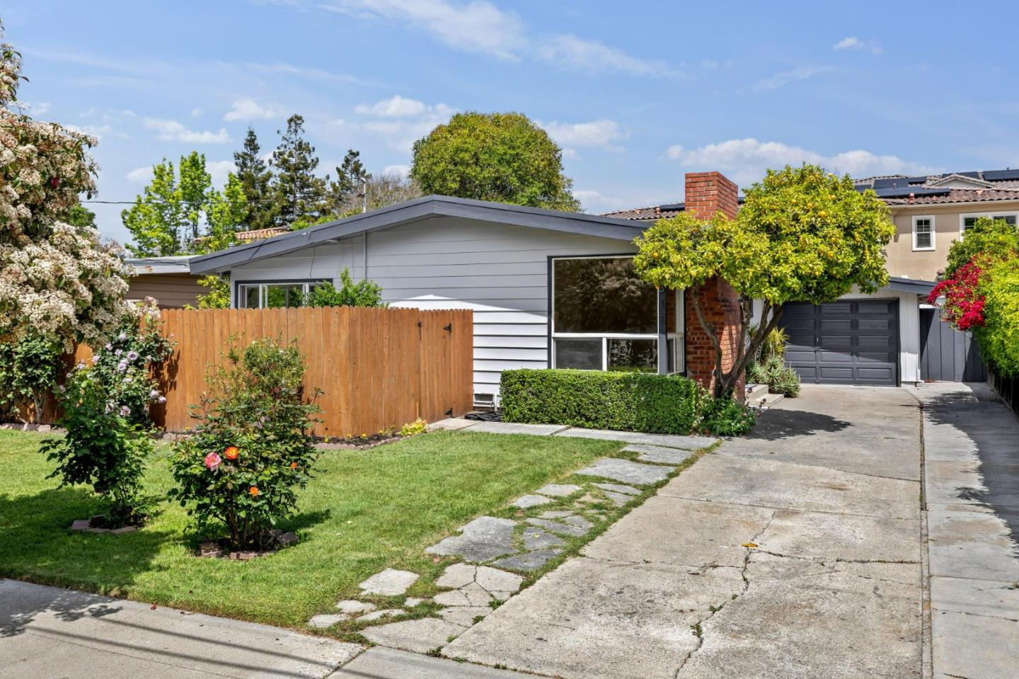 Surrounded by rose bushes, mature fruit trees and a vegetable garden, this updated home exudes charm. With high ceilings and lovingly refinished hardwood floors, the living area is bright and airy featuring a working fireplace, overhead fan and views out onto the front garden. Looking out onto a private front patio, the sunken dining room has new contemporary flooring and lighting, while the completely remodeled, kitchen features new cabinets, countertops and appliances. A skylit hallway leads back to the three bedrooms, as well as to the one and half baths, which have been updated with new tile flooring, vanities, lighting and fixtures. The house is set on a peaceful street, yet conveniently located near a shopping center, with the amenities of downtown Sunnyvale nearby.
