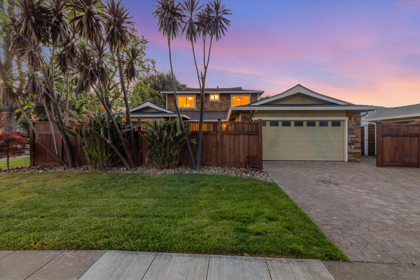 At the corner of Briarwood and Curtner this remodeled multigenerational home on a tree lined street with refreshed hardwood floors and new paint provides lots of living and dining spaces to enjoy! Granite counters, new double ovens, breakfast bar, stainless steel appliances including a farm sink and glass subway backsplash. There are new recessed LED lighting throughout the house with 3 bedrooms and 2 bathrooms downstairs with the primary suite on the ground floor and 2 bedrooms and 1 bathroom upstairs which could easily become a primary suite and office or extra large closet. There is a large (approx. 300sf.) bonus space perfect as another living space, playroom, studio or office. Spacious inside laundry with granite counters, tons of storage and a sink. The large landscaped yards invite you to come outside for dining, entertaining and relaxing. There are also several garden beds for your green thumb! Booksin Elementary, St. Christopher and easy access to freeways and shopping.