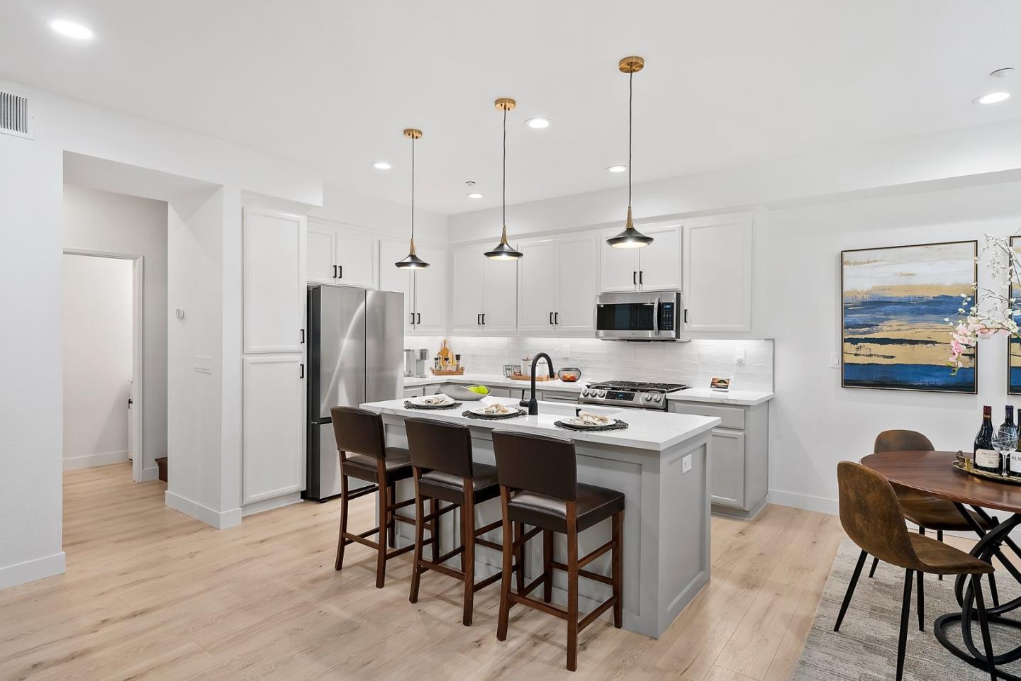 Welcome to this exquisite 2-bedroom, 2.5-bathroom residence nestled in the esteemed Copper Hill Community. Prepare to be captivated as you step inside this newly renovated haven. The kitchen is a masterpiece, boasting opulent Calacatta Florence Quartz countertops, a luxurious Moen touchless faucet, & top-of-the-line Samsung appliances. Every corner of this home exudes elegance, with stunning Cottage Oak waterproof laminate wood flooring downstairs and Hand scraped Walnut flooring upstairs. The primary suite is a sanctuary of indulgence, featuring a spa-like bathroom adorned with porcelain floor tiles, marble vanities with double sinks, and an upgraded rain showerhead. The 2nd bedroom impresses with a custom built-in desk, shelving, and a versatile Murphy bed. Embrace the epitome of modern living with the latest smart home devices, including a smart digital lock, Google Nest doorbell, hub, and thermostat, ensuring unparalleled security and convenience. Surrounded by idyllic hills and vineyards, this private community is a serene oasis, yet conveniently located just minutes away from I-580, Costco, schools. Come and experience the allure for yourself and make it your new home sweet home!