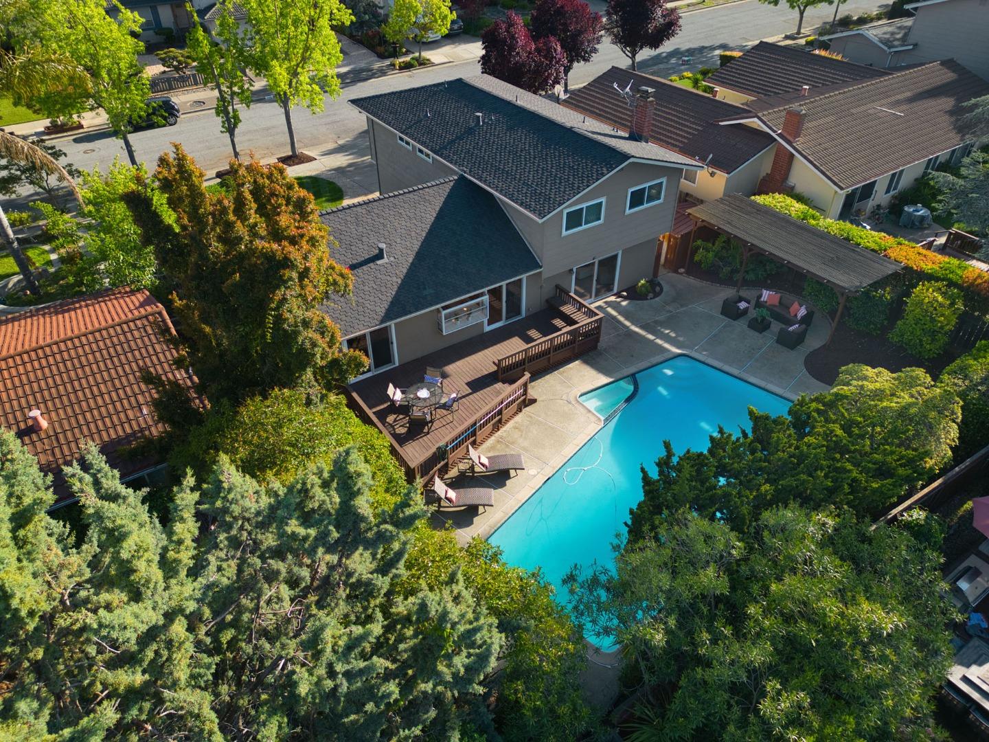 Discover the allure of this two-story home nestled in Almaden Valley. This home offers a rare blend of luxury, convenience, and charm. New Roof, new appliances, refinished hardwood flooring, new carpeting and fixtures. Fresh landscaping framing the entrance, setting the stage for a welcoming retreat. Immerse yourself in the seamless blend of sophistication and comfort, from the spacious living room with hardwood flooring to the inviting family room featuring a cozy fireplace and seamless access to the backyard oasis, complete with an in-ground pool, spa, and pergola perfect setting for relaxation and entertainment. Indulge in the convenience of modern amenities like central air conditioning, dual pane windows, and a 2-car attached garage with ample storage. Retreat to the upper level offering a tranquil primary suite and three additional bedrooms, each exuding warmth and comfort. With its ideal location close to parks, schools, and shops, and situated in the esteemed San Jose Unified School District, including Los Alamitos Elementary, Castillero Middle, and Pioneer High.
