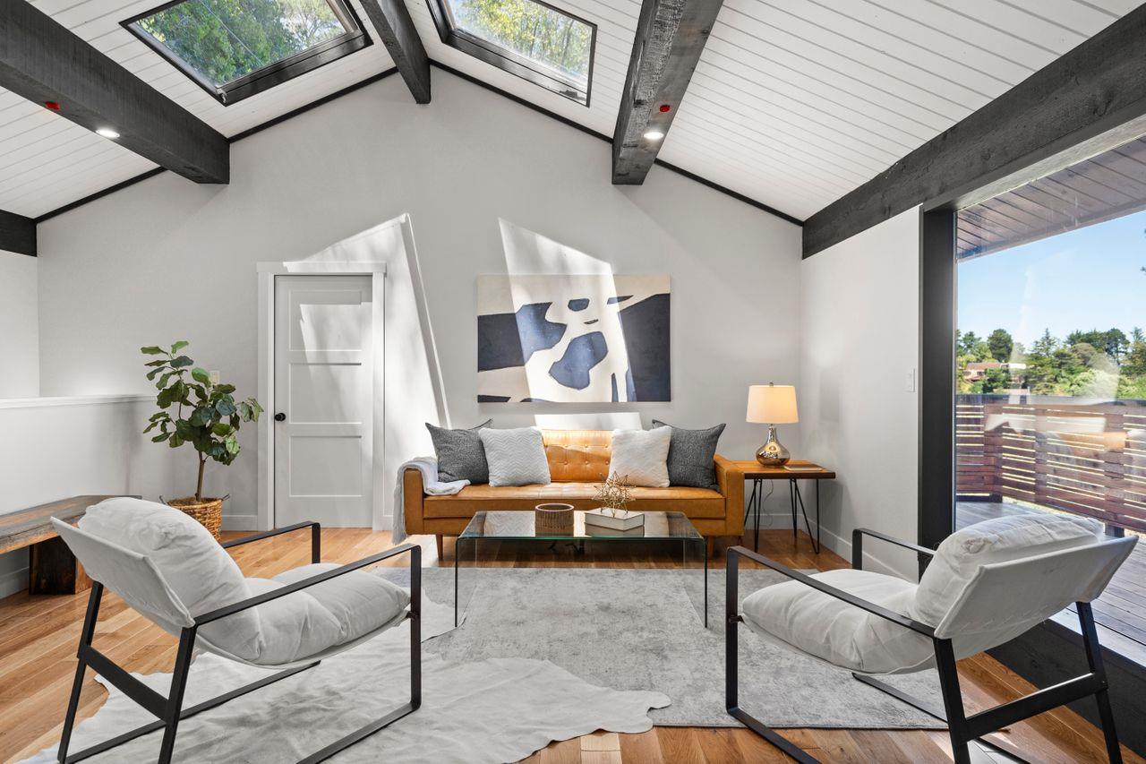 This stunning house in the woods is a nature lover's dream come true. Surrounded by towering trees and lush greenery, the house offers breathtaking views of the surrounding landscape. The exterior and interior of the house have been completely renovated, with a modern design that seamlessly blends in with the natural surroundings. As you step inside the house, you are greeted by a spacious and open floor plan that is flooded with natural light. The living room features floor-to-ceiling windows that offer panoramic views of the woods, allowing you to feel like you are one with nature. The kitchen has been fully renovated with stained steel appliances, sleek countertops, and plenty of storage space. The bedrooms are spacious and comfortable, with large windows that offer stunning views of the woods. The bathrooms have been remodeled with luxurious finishes and modern fixtures. One of the standout features of this house is the addition of fire sprinklers throughout the property, ensuring the safety of the residents in case of a fire. Additionally, the electrical car charger exemplifies the commitment to eco-friendly living and modern convenience that sets this house apart. This is a true gem that offers the perfect combination of natural beauty and luxurious living.