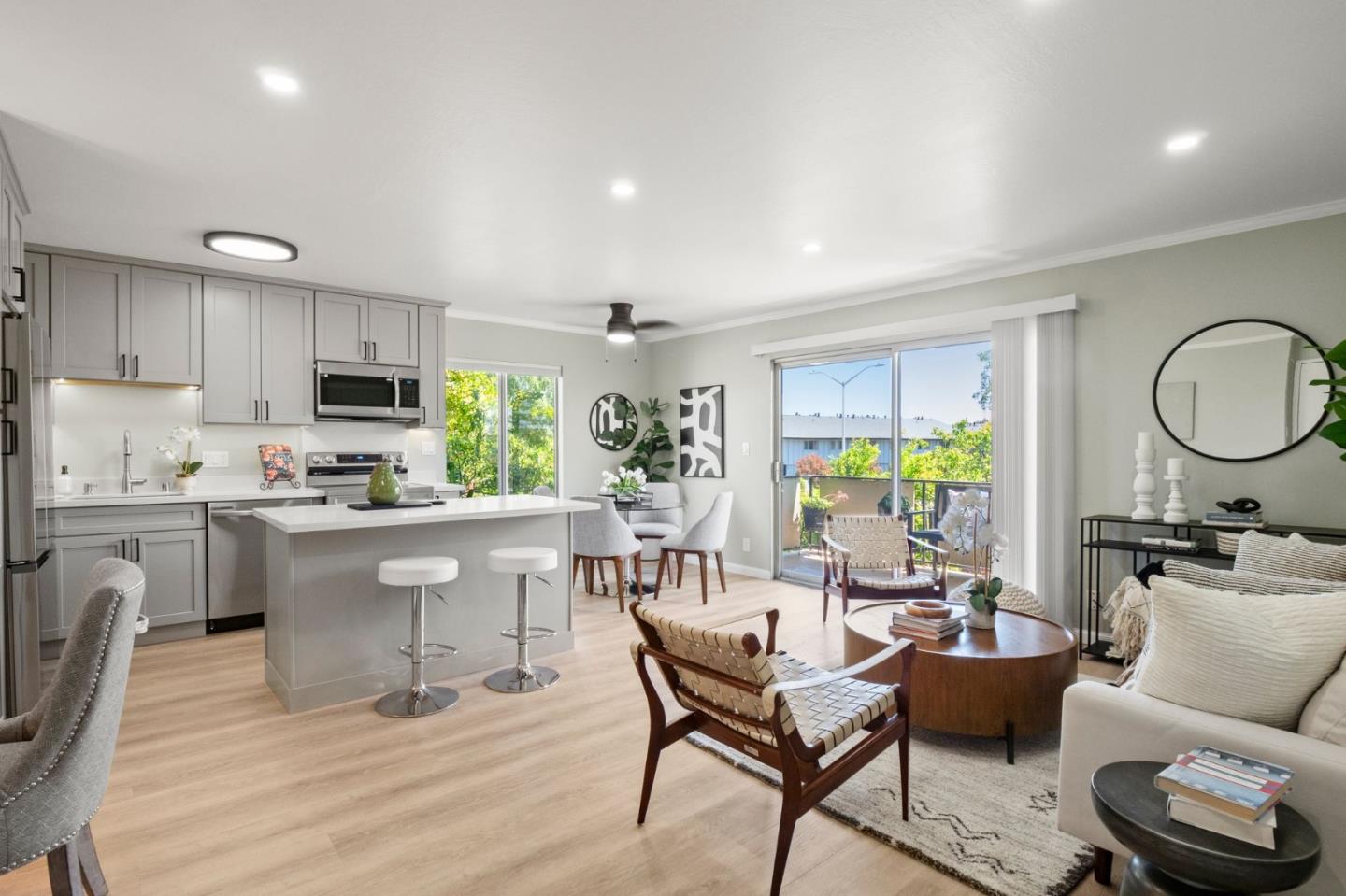 Welcome to this gorgeous tastefully remodeled end unit!! Cheerful unit with open concept floor plan, stunning kitchen with spacious island, shaker cabinets & all new appliances, under mount & recessed lighting. Light filled living and dining area with enough room for work at home space. Large sliding doors to deck area to relax and have your morning coffee, The updated bathroom features a shower over the tub, new tile flooring and more! The bedroom has new carpeting and new mirrored closet doors. A one car enclosed garage with extra storage cabinet. Lovely pool and grass area to enjoy. Pet friendly complex. Just minutes to popular Mariners Island Shopping Center, with Target, many additional stores and dining! Easy access to 101 and 92 for the commuter. This is a real GEM!!!