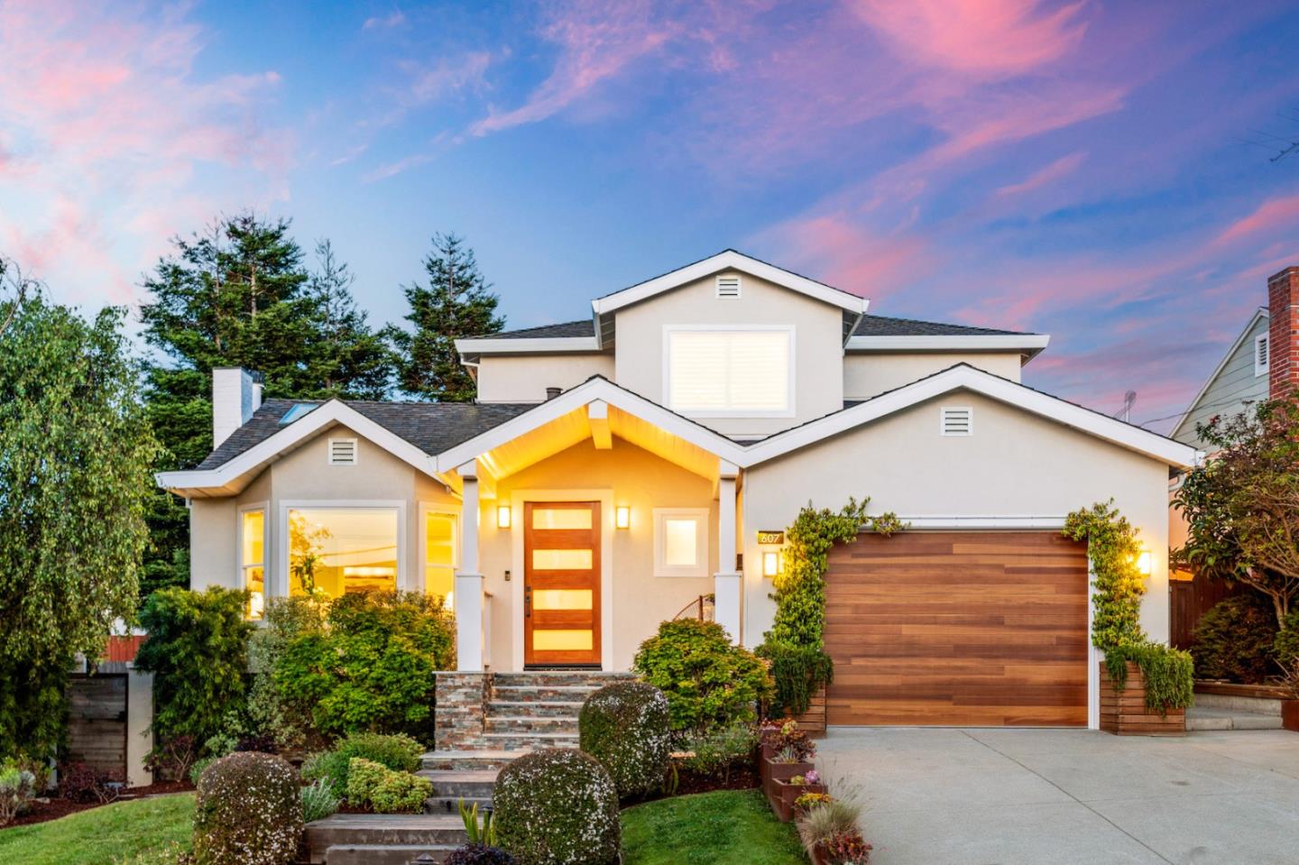 Completed in 2017 w/ $600k in high-quality renovations w/ an award winning architect, this exquisitely remodeled luxury home offers modern amenities & warm details. Charming curb appeal. Natural light floods the living room through skylights. Formal dining room boasts a designer lighting fixture. Hardwood floors, recessed lighting, elegant wood paneling & Legrand dimmer switches throughout. Modern kitchen includes custom European frameless cabinets, an island w/ a bar sink, engineered quartz & tiles, & high-end Thermador appliances, including a 6-burner cooktop, dishwasher, & high CFM pull-out hood, plus Bosch double ovens. Under-cabinet plugs, Hansgrohe fixtures, custom beveled countertop...full of detailed designs. Spacious family room, w/ a second fireplace, opens to the backyard. 2 bedrooms sharing an updated bathroom. The oversized master suite w/ crafted ceiling trims, a lavish bathroom w/ a jetted jacuzzi tub, walk-in shower, double sinks, & a walk-in closet w/ organizers. An additional guest bedroom. Updates include a high-quality 30-year roof, newer electrical & plumbing, upgraded windows & doors, redwood decks in front & back, a private paved stone flat backyard, plus a Tesla charger in the finished garage. Highly-rated Millbrae schools. Fully loaded, welcome home!