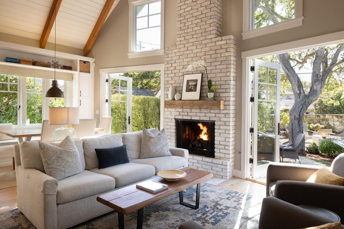 Perfectly located in the Golden Rectangle between downtown Carmel and Carmel Point rests this immaculate four bedroom, three bath cottage you have been waiting for. From the moment you enter through the garden gate, you can see yourself living happily ever after here. Features include a light-filled great room with soaring ceilings and exposed beams, Carmel stone fireplace, warm wood floors, French doors to an inviting multi-level patio where you can spend your summer days relaxing in the hammock, enjoying your evenings cozied up to the outdoor gas fireplace or unwinding after a day on the beach in the spotless hot tub in the private back yard. The kitchen, dining and living rooms are perfect for entertaining, and three ground floor bedrooms with large primary bedroom suite on the second floor provides just the right amount of separation you seek. Everything has been thoughtfully curated complete with quality finishes, excellent taste and a pleasing palate. Great location near award winning restaurants, art galleries, shopping, cultural events in Carmel-by-the-Sea, and the beautiful white sands of Carmel Beach.