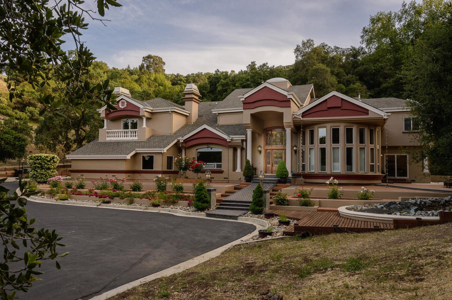The jewel of Woodland Acres! This majestic estate is nestled among the oaks in the western foothills of Morgan Hill. The stone pillar gated entry & tree lined driveway welcomes you to this stunning property. Home is 5451 sq ft w/ 5 bedrooms, 4 full baths, & 2 powder rooms. Grand family room w/curved wall & balcony highlights the elegance of this entertainers dream. Bright kitchen w/stone counters, stainless appliances, gas range, island w/sink, & plenty of lighting. Beautiful fireplace w/carved mantel & large arched window in living room. Grand sweeping staircase leads to wonderful library loft w/ built-in cabinetry. Luxurious primary suite w/ stately fireplace, sitting area, & large walk-in closet w/organizers. Inviting bath w/marble, dual vanities, stall shower, large soaking tub. Two Junior Suites (one on each level) & two bedrooms w/ Jack & Jill bath, means every bedroom is connected to a bathroom. Additional game room/office w/ built-ins, fridge, & hardwood floors. Dual HVAC zones & mini-split HVAC units for strategic heating & cooling. Lovely 2.44 acres w/stone lined creek, covered BBQ patio, other patios, & lawn, fruit trees. Plenty of parking w/ 3-car garage, custom carport, & additional parking areas. Lovely front landscaping w/rose terraces. This property is a must see!