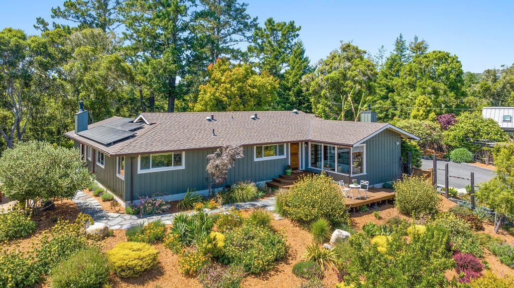 Spectacular single level Ranch style home with superior craftsmanship touches and ocean views! One of the very best locations in Aptos! Minutes to beaches, shopping, restaurants, Farmer's Market, great schools, world class mountain biking, and more.... yet off the beaten path in a park-like tranquil setting with full sun! Top quality finishes throughout with so many extras...bamboo floors, cherry cabinets, Douglas Fir doors, custom milled Redwood shelves, cypress trim, limestone entry, honed granite and limestone slab counters, Fisher Paykel and Miele appliances, Russound individual zone sound with Bose speakers, sauna, heated bathroom floors and towel racks, solar system, water conditioner, just to name a few! Lovely detached cottage/ yoga studio with deck and outdoor shower and additional separate detached office in a serene setting with lovely views. The floor plan is open with vaulted living areas, multiple skylights and full of light. Separate living room, family room and office... all on ground level. Expansive decks front and back with views of ocean and private, sun-drenched gardens! Loads of parking for boat or RV and a 2 car garage. Rarely do homes like this come available!