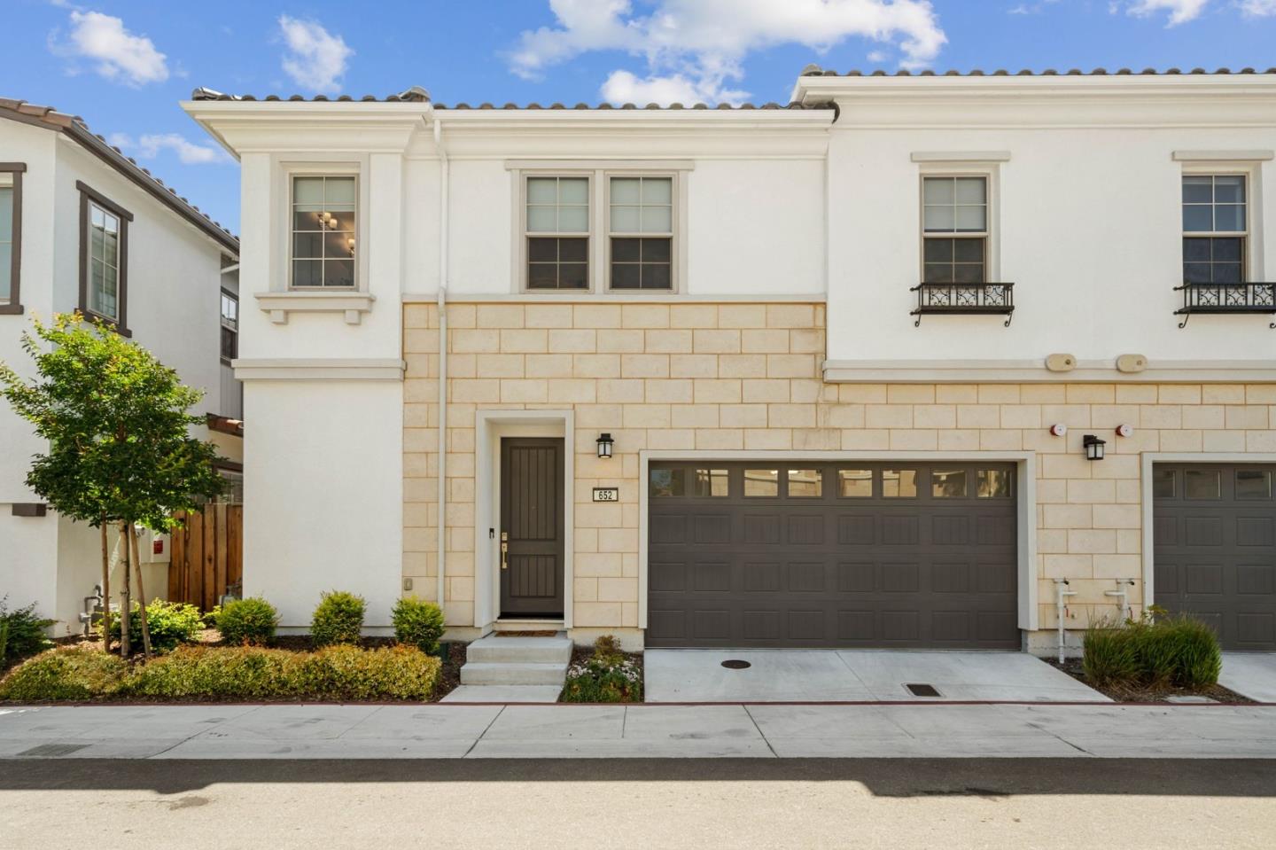 CENTRAL LUXURY DUET HOME | Situated securely just moments from major attractions, this duet single-family home built in 2021 is one of only 18 units in its private community to include a backyard. Soaring ceilings and breezy spaces accentuate light-filled interiors that flow into an east-facing backyard overlooking with covered patio, perfect for entertaining. An island with bar seating centralizes the kitchen, which offers stainless appliances and beautiful cabinetry. A loft/office and upper laundry join three bedrooms, including a grand primary suite with vast walk-in closet and spa bath. Other highlights include owned solar, tankless water heating, luxury floors, quartz countertops, and an oversized two-car garage with space for storage, bikes, or fitness. Shopping, dining, and tech magnets like NVIDIA, Apple, Microsoft, Google, and Amazon are all within easy reach. Central to Downtown Sunnyvale, Caltrain, the weekly Farmers Market.