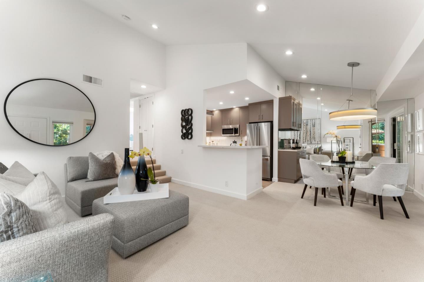 Enjoy true Silicon Valley living, minutes from the conveniences of both downtown Sunnyvale and Mountain View at this elegant top-floor condominium in the desirable enclave of Corte Madera. Completely remodeled in 2020, the home combines traditional comforts with sleek contemporary styling for a relaxed, refined environment, all blended beautifully with a designer color palette. A bright, open concept layout creates spacious living areas crowned by soaring vaulted ceilings, while a sliding glass door opens to the balcony with tree lined views for easy outdoor dining. Up just a few stairs, the private bedroom wing offers two well-sized and brightly lit bedrooms served by a beautifully remodeled hall bath. Completing the appeal of this exceptional home is its excellent location just minutes from everything-shopping, dining, parks, golf, cultural events, major commute routes, and local schools. An added bonus is the 2 car tandem garage that is close to the unit. This is the perfect place to call home.