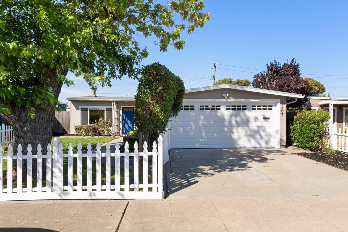 Experience modern elegance in this updated 3-bed/1-bath Shoreview/Parkside home, featuring 2024 updates and vaulted ceilings. A charming white picket fence and covered front porch welcome you, while fresh exterior and interior paint create a cohesive aesthetic. Inside, solid oak hardwood floors, a wood-burning fireplace, and recessed lighting enhance the living space. Large dual-pane windows flood the home with natural light, and sliding glass doors open to a flower wall and backyard patio. The kitchen, updated in 2018, features quartz countertops, stainless steel appliances, and a gas range with vented hood. The spa-like bathroom, also renovated in 2018, offers a luxurious retreat. A new roof installed in 2020 ensures peace of mind. The spacious attached two-car finished garage offers versatility as an exercise or yoga area. With ample storage shed and fresh paint throughout, this turnkey home is move-in ready. The large flat lot provides a private outdoor oasis for al fresco dining, entertaining, or expansion. Conveniently located near shopping, 101, 92, and slated for Aragon HS, this residence offers easy access to amenities and attractions. Embrace refined living in the heart of San Mateo with this beautifully updated home that combines modern comfort with timeless charm.
