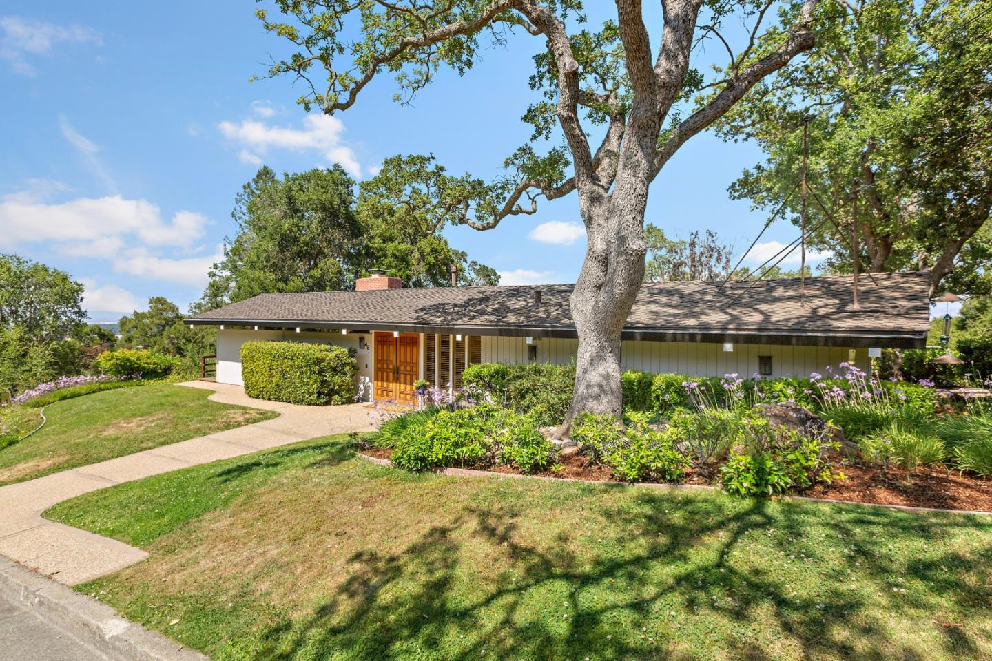 Located on one of Ladera's most desirable streets, this home offers the perfect blend of style, functionality, and comfort. Experience classic mid-century aesthetic with vaulted ceilings and expansive walls of windows that seamlessly connect the indoors with the outdoors. The family room has a cozy gas fireplace and lots of built-ins that include two pull-down tables perfect for work, study or hobby. Light and bright, the primary suite includes a walk-in closet and tucked-away bonus home office, providing a quiet space for work or study, plus stunning views of the backyard. Two bedrooms share a bathroom equipped with a Sauna. Formal dining room, built for hosting large gatherings, has a vaulted ceiling & ample built-in storage. Eat-in chef's kitchen has high-end app, lots of custom cabinetry, and granite counters, making cooking a snap. Enjoy your private backyard oasis featuring a stunning black-bottom pool and spa, ideal for hosting summer gatherings and relaxing with family and friends. A bonus 1 bedroom, 1 bath ADU is perfect for visiting guests or family members, offering them a private and comfortable space with private entry. Convenient to the Ladera Recreation Center, school bus stop, Stanford, easy access to Silicon Valley, commute routes & mid-way between SFO & SJC