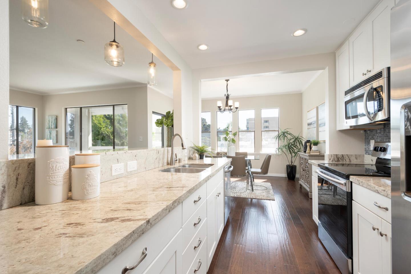IDEALLY LOCATED ON THE TOP FLOOR, THIS CORNER UNIT 2 BEDROOM/2 BATH CONDO HAS IT ALL! FEATURING A SERVING BAR, STAINLESS STEEL APPLIANCES, AND PLENTY OF CABINET AND COUNTERTOP SPACE, THE UPDATED KITCHEN IS THE HEART OF THE HOME. THE FLOOR PLAN IS OPEN AND AIRY, WITH HARDWOOD FLOORS THROUGHOUT, TALL CEILINGS, AND TONS OF NATURAL LIGHT. ENJOY YOUR PRIVATE PATIO ON SUNNY DAYS OR THE LIVING ROOM FIREPLACE ON CHILLY NIGHTS. THE PRIMARY BEDROOM IS SPACIOUS, WITH A LARGE ENSUITE BATHROOM AND TWO CLOSETS (ONE WALK-IN), AND THE SECOND BEDROOM AND BATHROOM ARE LOCATED ACROSS THE UNIT. THIS LAYOUT IS PERFECT FOR GUESTS AND/OR AS A HOME OFFICE. YOULL ALSO LOVE THE CONVENIENCE OF THE IN-UNIT LAUNDRY CLOSET AND THE ADDITIONAL DUAL LINEN CLOSETS IN THE MAIN HALLWAY. DESIRABLE DOWNTOWN LOCATION; CLOSE TO SHOPS, RESTAURANTS, AND PARKS. TWO SECURE PARKING SPOTS ARE LOCATED IN THE GARAGE AND THE BUILDING IS JUST TWO BLOCKS FROM THE CALTRAIN STATION AND ONE BLOCK TO SAMTRANS STOP. THIS ONE WONT LAST LONG!