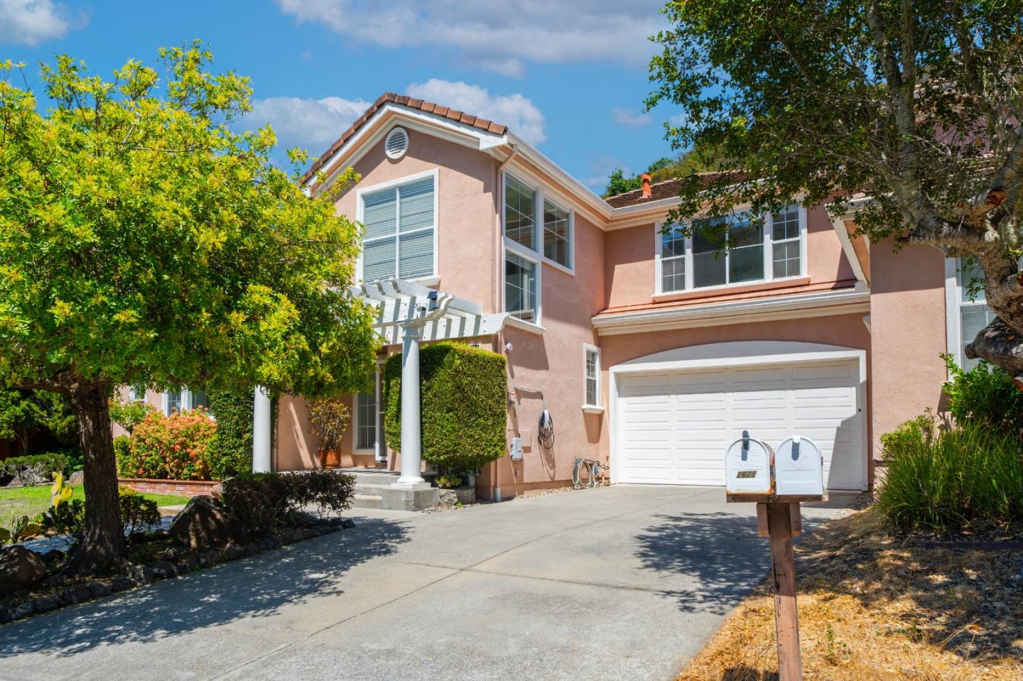 Transparent price! Welcome to this stunning, bright, and airy villa-style home in the prime newer enclave community of Hidden Valley. This enhanced home features a high cathedral ceiling at the entrance, a bright living room with a fireplace, and a large office which can also serve as a potential bonus bedroom on the first floor. The open-style, chef-inspired kitchen flows into the great room, which boasts skylights, a gas fireplace, dining and a sliding door to the backyard. The home is filled with natural light from the large windows throughout. The second floor includes a spacious primary suite with a walk-in closet, two guest bedrooms, and a hallway bathroom. The professionally landscaped backyard with a deck is perfect for entertaining. Just steps away from Hidden Canyon Park's hiking and biking trails and close to top Belmont schools and Carlmont Shopping Center. Enjoy easy access to Hwy 280, Caltrain, and Hwy 101. With wood floors, EV charger, new interior paint, and new carpet, this home is move-in ready!