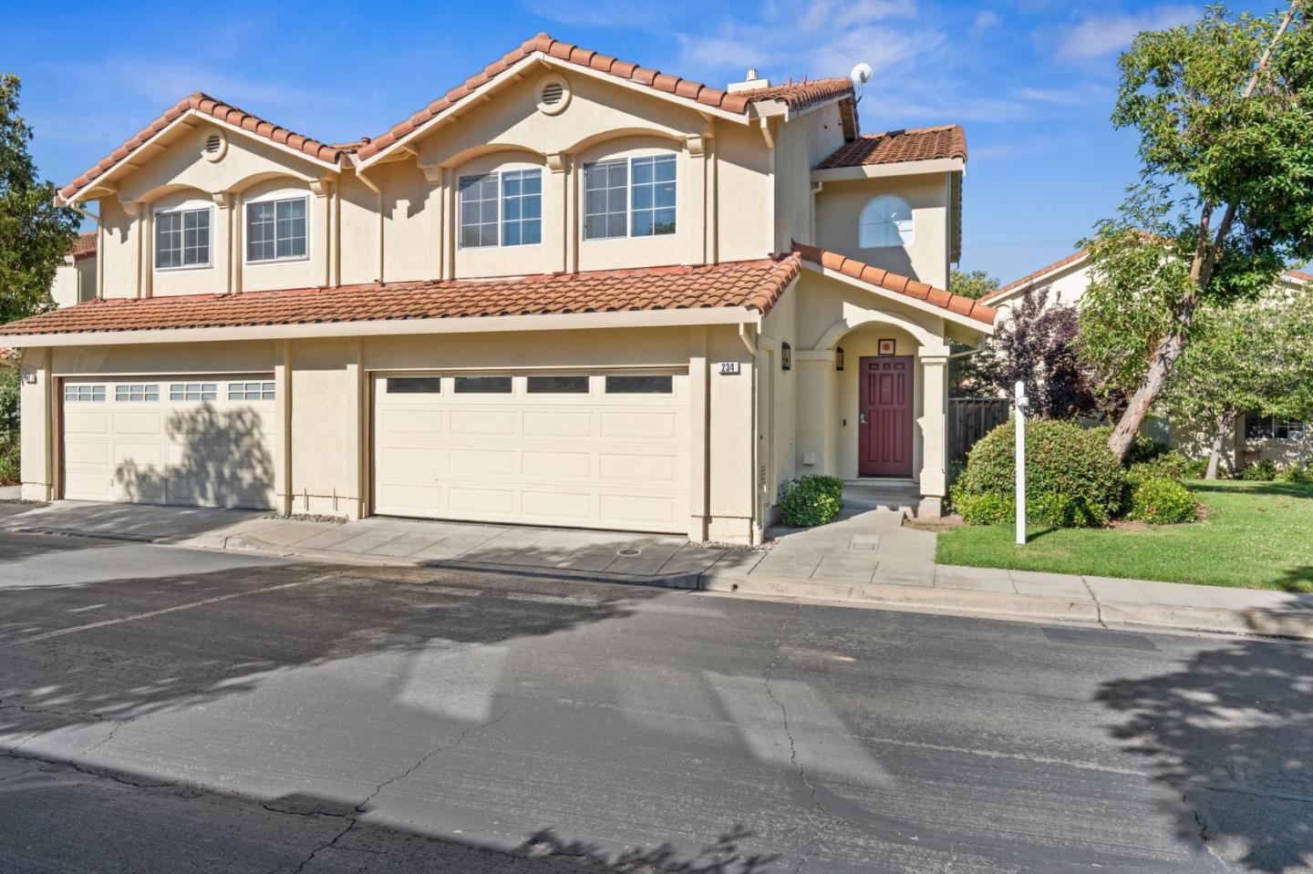 Welcome to this stunning corner townhome in Milpitas that feels like a single-family home, featuring 3 spacious bedrooms, 2.5 bathrooms, and 1,427 square feet of living space. Built in 1994, the home boasts fresh custom grey paint, new carpet, central A/C, high ceilings, and a new gas fireplace. The modern kitchen offers granite countertops, stainless steel appliances, and tile flooring, while the downstairs area features easy-maintenance laminate flooring. All bedrooms are equipped with custom closets and remote controlled window shades, and the primary bedroom includes a glass enclosure shower with a sunken tub and dual sinks. The guest bathroom also features dual sinks and a glass enclosure shower with a tub. The attached 2-car garage, equipped with a Tesla Charger, and ample guest parking provide convenience. The beautiful backyard with artificial turf offers low maintenance and plenty of shade. Enjoy community amenities like a swimming pool, and benefit from low HOA dues. The home is located near top-rated schools (8/10 Curtner Elementary, 9/10 Thomas Russell Middle School, and 9/10 Milpitas High School), Beresford Square Shopping Center, Hidden Lake Park, and offers easy access to Highway 880/680/237 and major technology companies. This home truly checks all the boxes!