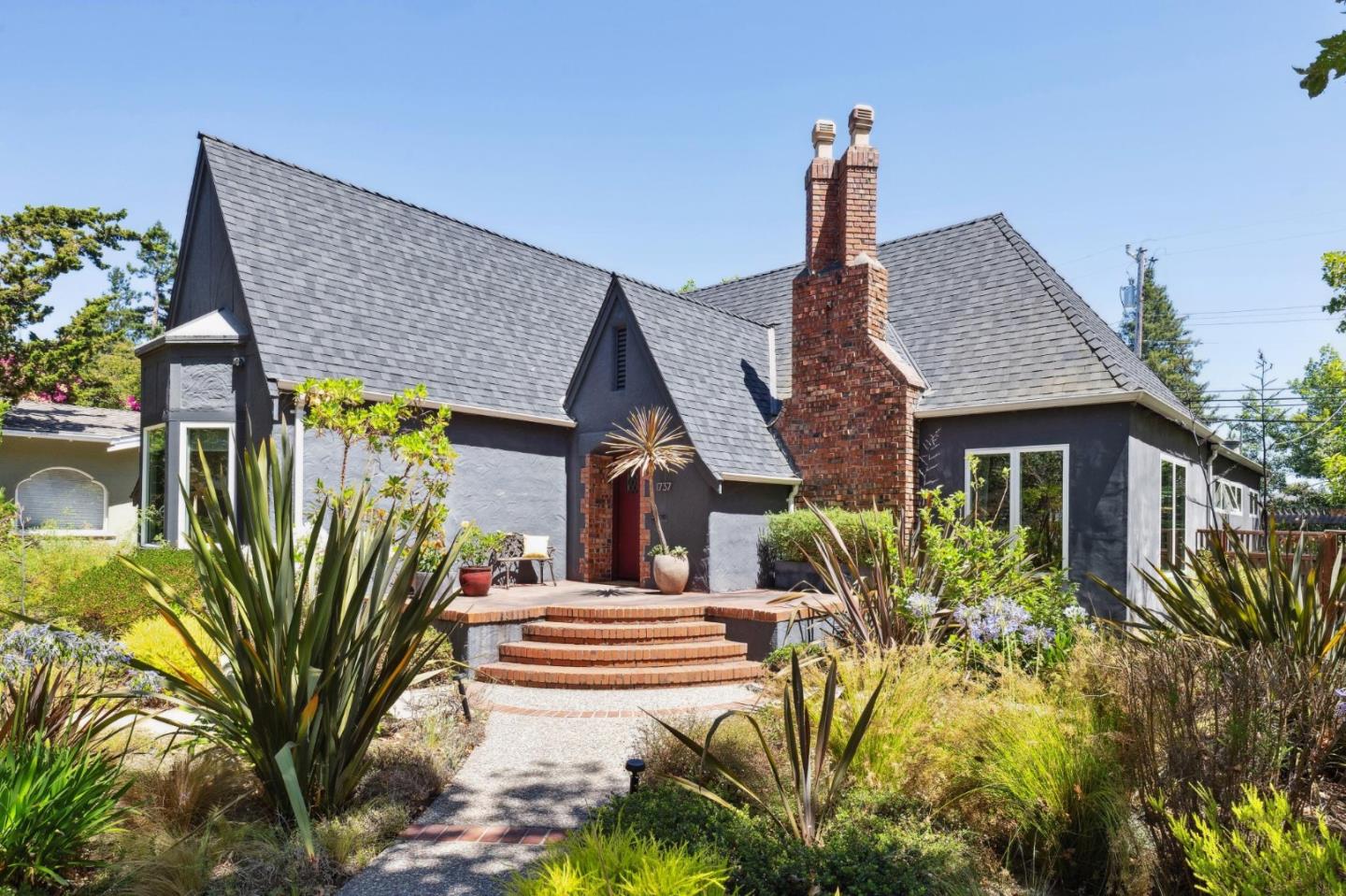 The charm and character of 1929 construction exude from this unique and magical home in the sought-after Mt. Carmel neighborhood of Redwood City. Remodeled and updated to meet the modern day, this exceptional home perfectly blends history and functionality. As you approach through the gate, the professionally designed California native, drought-tolerant fenced-in garden wraps around the house with a sandstone walkway that creates a beautiful oasis and privacy. The lovely entry is welcoming as you step through the archway and down into the living room. The beautiful period fireplace, high ceilings, surrounding windows, and gleaming hardwood floors all contribute to this enchanting space. The dining room, with a fabulous light fixture at the center of the home, is a beautiful place to gather, entertain, and enjoy. Sleek and modern yet warm and grounding, the custom kitchen boasts expansive butcher block countertops, high-end stainless steel appliances, a row of casement windows, and a breakfast bar. Two bedrooms with gleaming hardwood floors share a large bathroom with marble countertops, a large walk-in shower, and handsome fixtures. The ensuite bedroom overlooks the backyard and features a Murphy bed. It also has a unique and artistic bathroom and vanity area. Must see!!