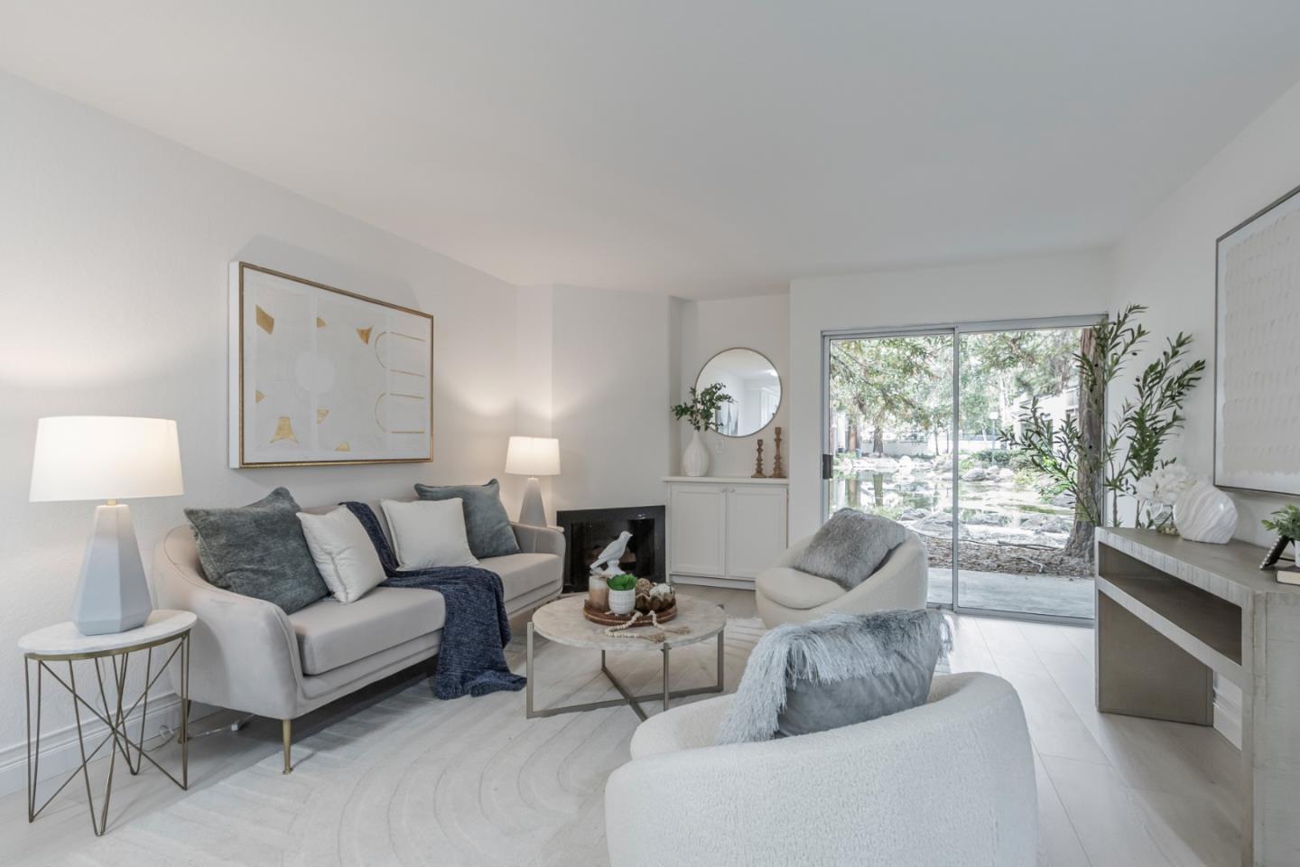 Welcome to this newly renovated 1-bedroom, 1-bathroom condo in a gated community in San Jose. Situated on the first floor, this home features a large living room with a cozy fireplace and a sliding door that opens to a backyard with views of a water pond and redwood trees. The entire condo boasts brand new SPC waterproof flooring. The kitchen is completely updated with quartz countertops, new appliances, and white shaker-style cabinetry. The en-suite includes a spacious bedroom and a renovated bathroom with a stall shower. The interior has fresh paint throughout, and new lighting fixtures in the living room, kitchen, and bathroom. Additional upgrades include new in-unit washer and dryer, and new double-pane windows. The community offers a pool and tennis courts. Conveniently located near shopping, restaurants, parks, and with easy access to highways 101, 880, and 87. Don't miss this great opportunity!