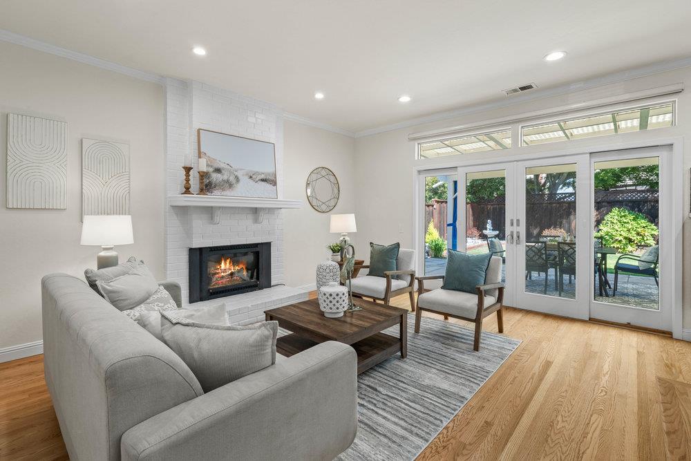 Welcome to this charming single-level home in a quiet cul-de-sac of Foster City, featuring 4-BR and 2.5-BA across a generous 1900 SQ of living space. Step inside to discover a blend of unique hardwood floors that add character to the living areas. The living room, adorned with a picturesque bay window, greets you upon entry, setting a warm & welcoming tone. Adjacent to the living room is the dining room, which boasts a built-in hutch for ample storage. The open kitchen, complete with an eat-in area, flows seamlessly into the dining room, making it ideal for both everyday meals and entertaining. Just off the kitchen is the step-down family room featuring a gas fireplace and double doors that open to a covered patio, perfect for indoor-outdoor living. The primary bedroom offers a private retreat with a sliding door that leads to the serene rear yard. Indoor laundry and crown molding are an added bonus to the space. The large side yard presents an excellent opportunity for accommodating an RV. A unique feature of this home is the partially converted garage leading to a versatile game room/loft with a half bath, ideal for entertainment, an artist studio, or simply relaxing. Additionally, this home is equipped with solar panels. Bonus 1/2 bath in game room may not be permitted.