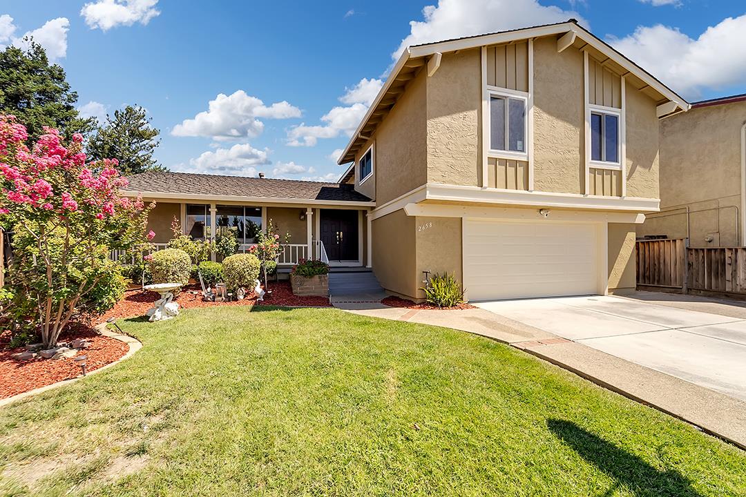 Beautiful 4 bedroom, 2.5 bath home, 2113 SqFt, with a large inviting layout, in a desirable Hidden Glen neighborhood in San Jose, nestled at the end of a quiet cul de sac. Huge 7405 Sq ft Lot and backyard with swimming pool is perfect for entertaining. Large living room leading to a formal dining room with fireplace. Updates galore worth 150+K. Some of the upgrades include, but not limited to, a new remodeled kitchen with Quartz counter tops & stainless steel appliances, alabaster wood cabinets with an eat-in dining area overlooking the sunken family room with fireplace. New refrigerator, microwave, updated bathrooms, backyard pavers, above ground swimming pool , new fireplace tiles, new gutters, new Duel fuel HVAC system that runs on solar reducing electricity bills but with an option to switch to GAS in extreme winters, exterior and interior paint, recessed lights, new carpets and new windows. Half bath and laundry room with plenty of storage conveniently located first floor. All four bedrooms are located upstairs. Leased solar in place. Conveniently located near parks, shopping, and dining, easy commute to freeways 101/280/680. Easy access to Evergreen Valley Square for Shuttle to bay area companies such as Apple, Facebook, Google & more.
