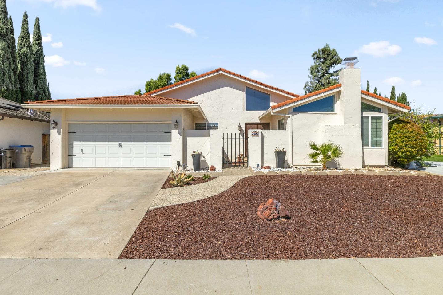 Welcome to this charming San Jose home located in a quiet cul-de-sac. As you enter the double front doors, you walk into a light and bright living/dining room combo with high vaulted ceilings, fireplace and a combination of carpet and wide plank wood floors. A large eat-in kitchen with island and granite countertops. Both family room/kitchen also have wide plank wood floors. Inside Laundry room with washer/dryer and open shelving for storage above. The large primary suite also has vaulted ceilings that make it light and airy and two other bedrooms. For those nice summer or chilly nights, the backyard has a beautiful wood pergola and fire pit for outdoor dining or entertaining. Easy access to freeways and shopping. An absolute gem!