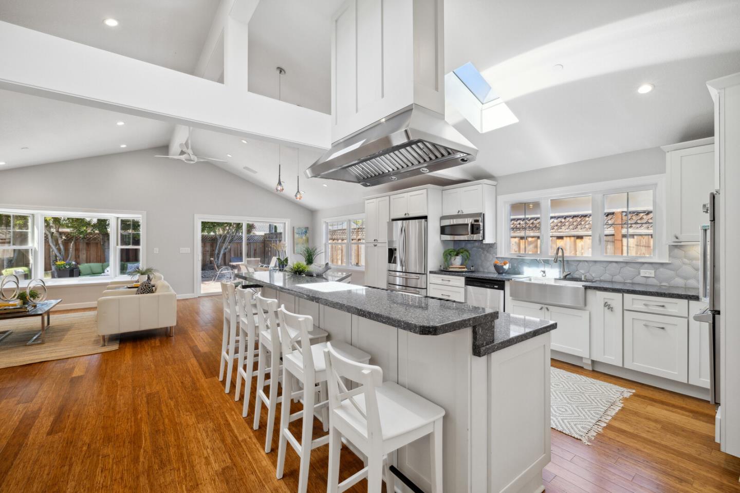 Perfectly designed for both gracious entertaining and comfortable everyday living, this beautifully remodeled ranch home features stylish updates and ideal indoor/outdoor flow. The home welcomes you with sweeps of hardwood bamboo flooring, exposed beams and a focal point fireplace in the living room. The social heart of the home is the great-room arrangement comprising of a stunning granite appointed chef's kitchen with a long center island with counter seating connecting with an expansive family room with bay window and sliding glass doors to the backyard, all crowned by a soaring cathedral ceiling . Kitchen includes a Wolf 6-burner range top, Viking French door double oven and wet bar with glass tile backsplash. The primary suite boasts a designer bath with quartz vanity and generous storage cabinetry, walk in closet and direct access to rear patio. Off the hallway at the front of the home are two well sized bedrooms and an updated bath. Wonderful private backyard with expansive entertainers patio and mature shade trees. Home is located on the westside of Branson Dr. minutes to shopping and dining with easy access to 101 and Caltrain.