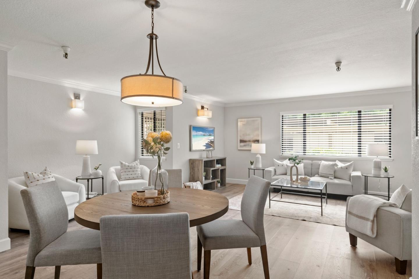 Appreciate a peaceful 55+ community at the desirable Los Gatos Commons. Impeccably landscaped, follow manicured pathways to reach the entry of this darling, single-level condominium. An open, spacious floor plan offers versatility with durable, planked flooring that extends throughout. The sleek kitchen provides an inspiring space to prepare your favorite meals with/ stainless steel appliances. An open floor plan that flows out to your private patio. Retreat to the primary suite w/ a spa-appointed ensuite, accompanied by a guest bedroom & stylish hall bath. In-unit laundry, reserved parking, & ample storage further complement this dreamy home. Spend weekends enjoying vibrant Los Gatos & endless community amenities, including shuffleboard, ping pong, a pool table, & a heated pool with/ a hot tub. Explore beloved local restaurants, cafes, & parks w/ seamless travel to neighboring cities w/ nearby CA-17.