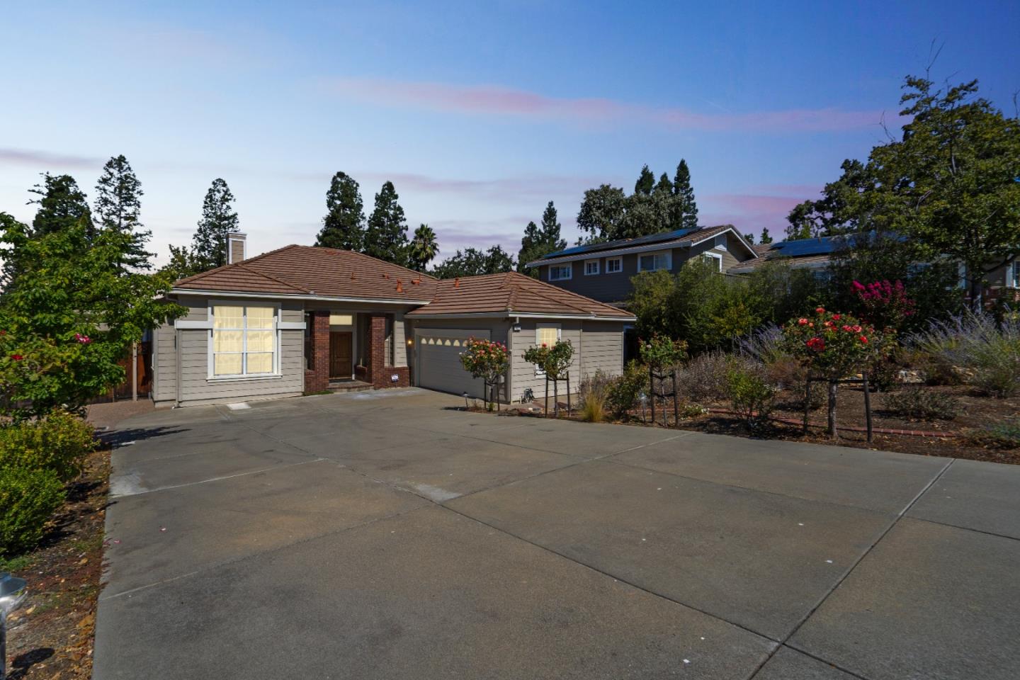 Updated and well maintained single level home walking distance to Downtown Pleasanton! Resort style living surrounded by multi-million dollar properties. Long curved driveway, spacious 2 car garage, grand entry foyer area, spacious dedicated living/family/dining areas, and lots of natural light throughout. Hardwood floors, recently installed carpets, coffered ceilings, crown moulding/baseboards/double pane windows throughout, built in study/office area, recessed lighting, multiple ceiling fans. Gourmet kitchen with granite countertops, high-end cabinets with lots of extra storage, gas stove/oven, dishwasher, microwave, dedicated dining room/eat-in kitchen area/bar top dining area. Large oversized windows overlooking your resort-style sparkling blue swimming pool/spa. Fenced pool area, newly installed turf, backyard walking paths, sprinkler system, and mature rose bushes and fruit trees in the front/back yards. Large side yards with storage sheds included in the sale. Extra large master suite with walk in closet, office/study sitting area, and french door direct access to the backyard. Master soaking tub, dedicated separated stall shower, and dual bathroom sinks. Dedicated laundry room with built in cabinets. Short distance to Ace train station, BART, and Hacienda business park.