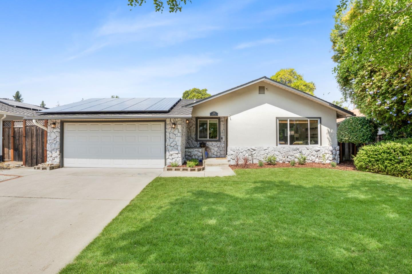 Discover modern luxury in this beautifully renovated 3-bed, 2-bath single-story home (originally 4-bed) in the heart of Campbell. This exquisite home features a gourmet kitchen with upgraded stainless steel appliances and an open floor plan filled with natural light. Hardwood flooring extends throughout, and large windows offer picturesque views of a stunning Ginkgo tree. The spacious living and dining areas seamlessly flow into a bright family room with custom built-in bookshelves, leading to a large backyard perfect for entertaining, complete with wisteria lining the fences and multiple fruit trees. Additional highlights include a Tesla charger, solar panels, heated floors in the primary bathroom, custom closets and freshly painted, with updated lighting. Situated just blocks from San Tomas Aquino Park and moments from Nob Hill Shopping Center, this home offers the serenity of a quiet, tree-lined street in a vibrant friendly neighborhood with top Campbell schools. It's the perfect choice for buyers seeking both convenience and a quality lifestyle.