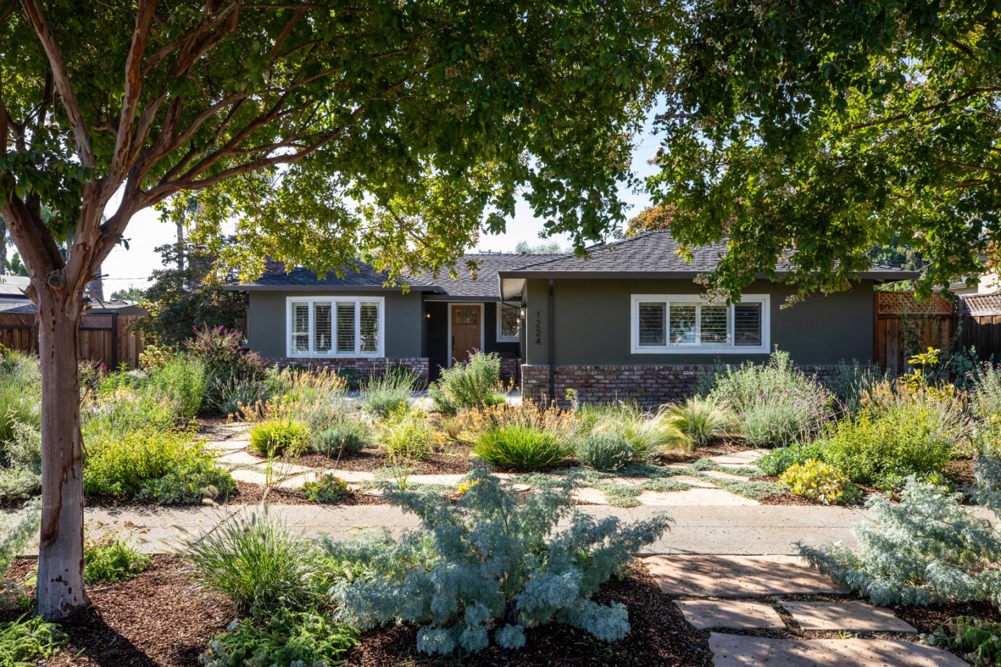 Stunning custom remodel completed in February 2024, this charming Willow Glen home offers a thoughtful blend of classic elegance and modern amenities. Refinished original hardwood floors flow throughout, complemented by wooden shutters and abundant natural light. The spacious layout includes fireplaces in the dining and living rooms, a large gourmet kitchen with a Bosch French door fridge and Smeg induction range, heated bathroom tile floors, and convenient indoor laundry. The wide, private lot features beautifully landscaped front and back yards with fruit trees, an eco-friendly rain garden, raised veggie garden beds with outdoor composting bins, and vibrant flowers attracting butterflies and hummingbirds. A breezeway connects the home to a two-car detached garage. Additional highlights and eco-friendly amenities include a robust solar system (owned), EV charging, a backyard gas fire pit, and a whole-house water softening and filtration system. Nestled on a safe, tree-lined street across from the large grassy soccer field of Schallenberger Elementary School, this home offers tranquility and community in a friendly Willow Glen neighborhood.