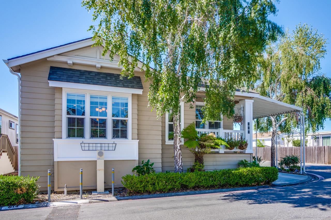 Why pay $1.5 to 2.0 million for a 3 bedroom, 2 bath 1600 sqft home in Sunnyvale? This newer (just 13 years old) mobile home feels more like an upgraded condo, (pictures don't do it justice - must see to appreciate) meticulously maintained by original owner. Laminate flooring throughout except 1 carpeted bedroom. Crown molding. Wide baseboards. Granite counters. Upgraded lighting. Smart washing and dryer. New AC unit. Extensive storage and much more. Outside: paved, private outdoor area. Dog run with astroturf. Tastefully landscaped with auto irrigation system. Electrified, oversized shed with shelving + pegboard. All this and the amenities of Casa De Amigos community. Located just 5 minutes from Lawrence Expressway and 101. An assumable with qualification below market space rent is available.