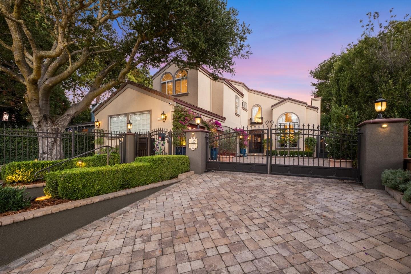 As if lifted from the Tuscan countryside, this home has been artfully remodeled inside and out with influences from Spanish and Italian design. The impressive two-story residence features secure gated privacy, Mediterranean landscaping, and a custom iron and glass portico entrance. Hand-painted Spanish tiles adorn the stair risers and portico, setting the tone for the exceptional interior and outdoor spaces. New paint and refinished hardwood floors add a fresh touch throughout. The grand-scale two-story living room, family room, and gourmet kitchen open to the rear grounds plus there is a formal dining room. There is a main-level bedroom suite plus 3 suites upstairs, including a primary suite and oversized junior suite that each have an en suite bath for two. The fully renovated outdoor space includes a dining lounge, fireplace lounge, a fully equipped and covered kitchen including pizza oven plus an oversized spa. Solar-powered electricity, portable backup generator, and rare 3-car attached garage. Excellent Burlingame Park location just blocks to Broadway and Burlingame Avenue.