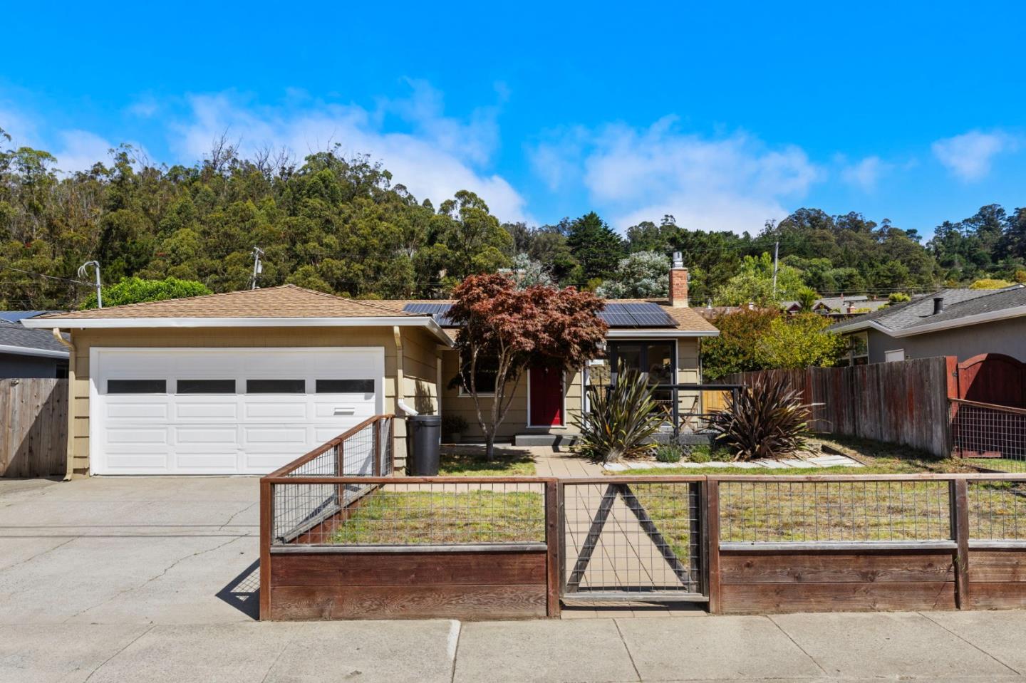 Welcome home! This rare, single story California ranch-style home is ideally located between Linda Mar and Pacifica's famed Sun Valley. Accordion glass doors invite-in an abundance of natural light and help frame beautiful views of Montara Mountain. This tranquil property is perfect for indoor/outdoor living. The kitchen has been reimagined to provide an open concept with center island counter spaces and stainless steel appliances. The home features oak hardwood floors throughout with a functional layout and flowing interior. Upgraded mechanical systems include electric radiant ceiling panels, and EV car charger. An owned solar system offers net-zero energy consumption! Perimeter fencing takes advantage of the entire sprawling lot with a view-perch at the rear yard! Enjoy Pacifica's over-performing public schools and a quick commute to San Francisco, or the Peninsula. Hiking, biking, surfing, bird-watching and beach-combing are part of the tranquil coast-side lifestyle! Come visit today!