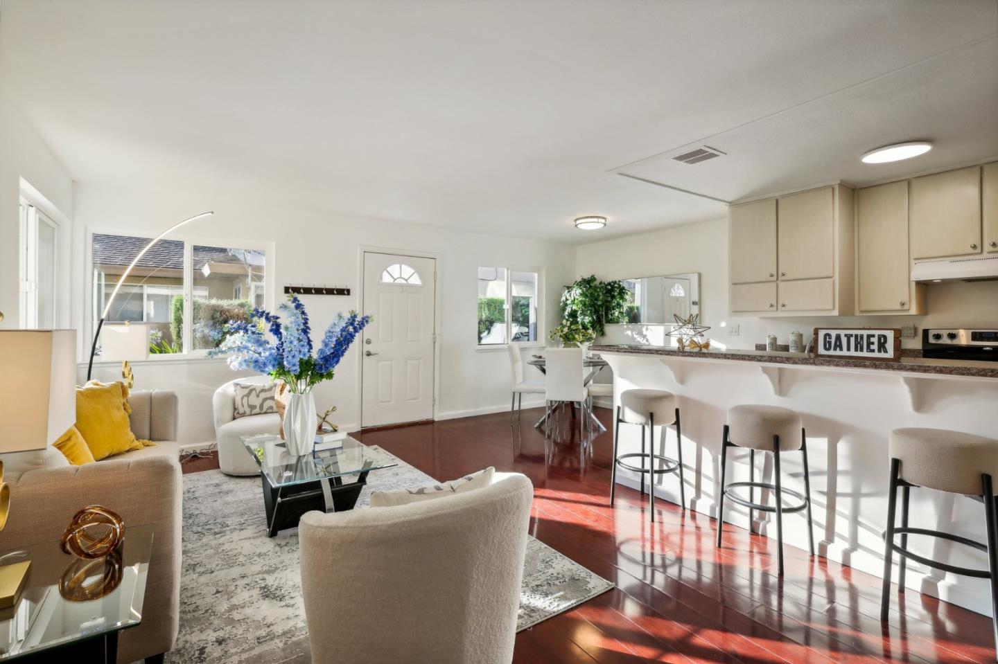 This beautiful condo shows like a townhome, no neighbors up or down stairs! This moves in ready home features fresh painting, laminate flooring through out, updated dual pane windows and good size kitchen with quartz countertop, shining cabinets and SS appliances. All with HOA approval. With low HOA fees of just $410, covering water, residents gain access to community amenities such as the pool, clubhouse, BBQ area, playground, and trails, offering both convenience and recreation right on your doorstep. It includes a garage/carport space with enough room for a second car to park directly behind in tandem, along with additional storage located in the garage area. The laundry room is attached to the building. Conveniently located just minutes from Highway 680 & 101 and in close proximity to hiking Trails, supermarkets, restaurants, banks, stores, post office, golf, Library, and easy walk to VTA & BART. Also close to giant tech such as Tiktok, Paypal, Adobe, and many more.