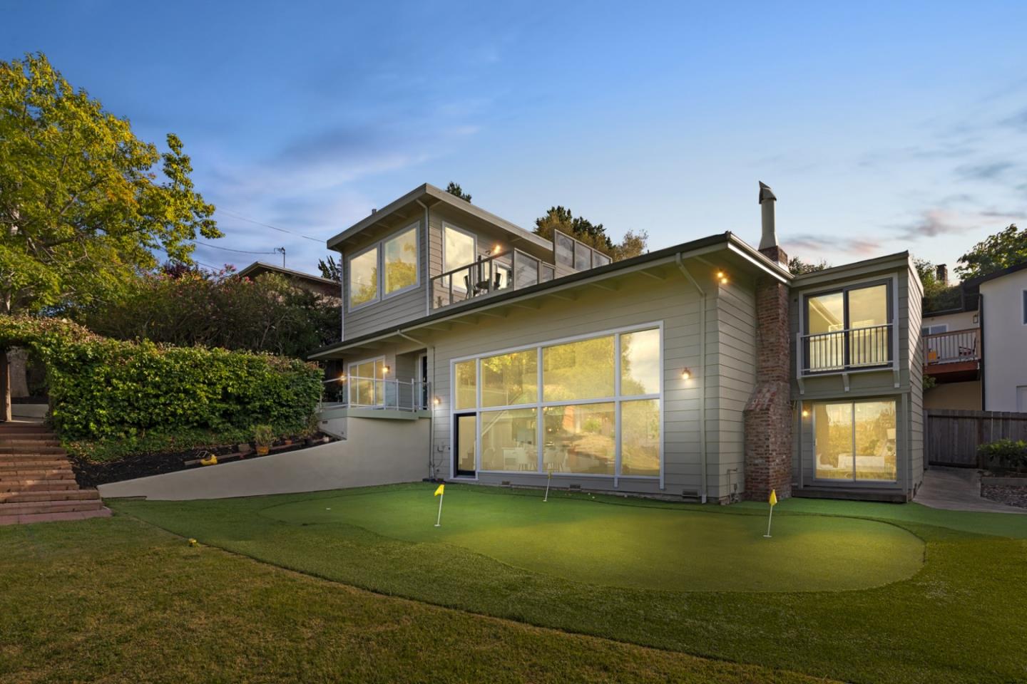 Tucked away at the end of a peaceful cul-de-sac, this stunning contemporary home strikes the perfect balance between luxury and tranquility. The newly remodeled kitchen, complete with modern appliances and sleek finishes, is a chef's delight. The open-concept living and dining area is bathed in natural light, with floor-to-ceiling windows. The top-level also provides sweeping vistas of the Bay, perfect for unwinding with a drink or enjoying serene sunsets. The backyard, designed for the golf lover in mind, features a putting area and sand trap, making it a delightful spot to practice your swing or entertain guests. With lush landscaping and abundant space for outdoor entertaining, this backyard is a true haven. This sophisticated retreat has been thoughtfully updated, offering an elevated lifestyle in an unbeatable location.