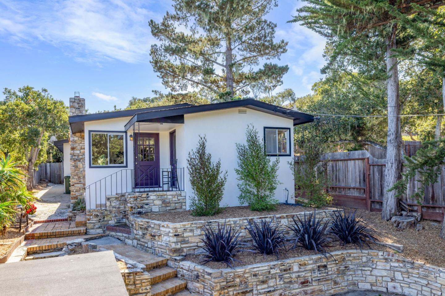 Nestled above Old Town Monterey in a quiet neighborhood, this 3-bedroom, 2-bath home features timeless Carmel stone accents along the exterior. The comfortable floor plan includes spacious bedrooms, a cozy fireplace, and peek-a-boo bay views from the living room and front porch. Recently refreshed inside and out with new paint and refinished hardwood floors. The private backyard offers a peaceful retreat, perfect for relaxation or creating your own Zen garden in the sunbelt. A true hilltop gem in a prime location.