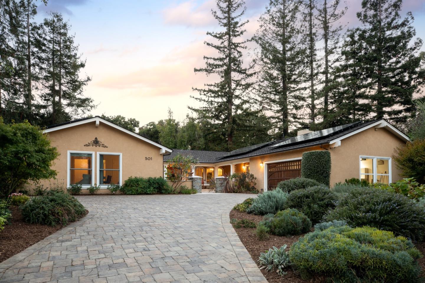 Just one mile from the Los Altos Village, on a tucked-away cul-de-sac in the desirable Dos Palos neighborhood in North Los Altos, this exceptional home masterfully combines luxury and outdoor living. A whole-home renovation with a designers touch to every corner, featuring hardwood floors and crisp white millwork throughout. The single-level layout is fully oriented to the outdoors, with a welcoming front courtyard reminiscent of a European country villa. Inside, elegant formal rooms lead to a gourmet kitchen and family room, a separate wing is dedicated to 3 well-appointed bedrooms, including the primary suite that opens to the rear grounds. Step outside to resort-like grounds that epitomize California outdoor living. The expansive grounds, boast a newly renovated pool with a custom slide, an elevated spa, and four fire bowls create a captivating evening atmosphere. The outdoor space continues with a stainless steel barbecue kitchen, a dining terrace, and a wood-fired pizza oven. Additional features include a putting green, media lounge with fire pit, and 4 raised vegetable beds for a farm-to-table lifestyle. Offering a unique blend of sophistication and leisure with access to acclaimed Los Altos schools, this home is perfect for Silicon Valley indoor/outdoor living.