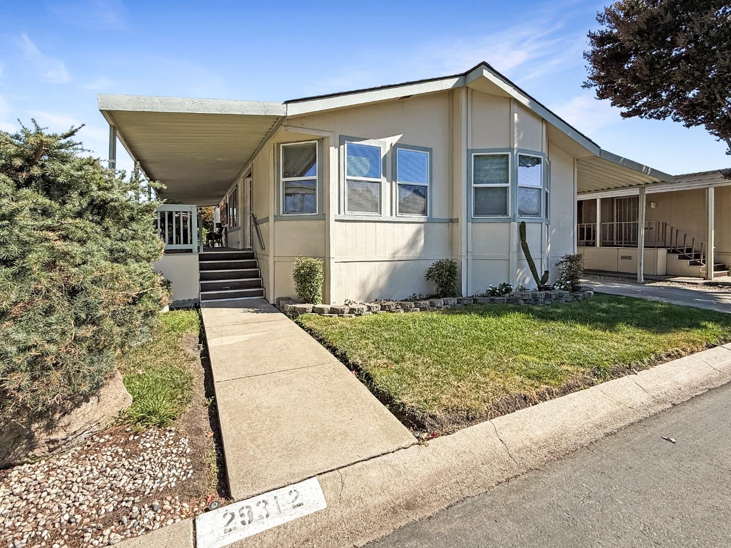 Welcome to this charming 2004 Silvercrest Doublewide 2-bedroom, 2-bath mobile home located in the quaint New England Village, a sought-after 55+ community in Hayward. Offering a serene lifestyle, this home features a spacious living area filled with natural light, perfect for relaxing or entertaining. The kitchen is well-equipped with ample storage & stainless appliances while room has enough space for a casual dining area offers a cozy space for meals, and the dining room is great for entertaining. Both bedrooms are generously sized, with the primary suite boasting an ensuite bath for added comfort. A Den/Office is the perfect bonus space. Outside, enjoy a private patio area, ideal for morning coffee or evening relaxation. New England Village offers a quiet, picturesque setting with tree-lined streets and access to community amenities like a clubhouse, pool, and social events. Conveniently located near shopping, dining, and transportation, this 2004 Silvercrest home provides the perfect blend of tranquility and accessibility. Experience the welcoming atmosphere of this 55+ community, where neighbors become friends and a peaceful lifestyle awaits.