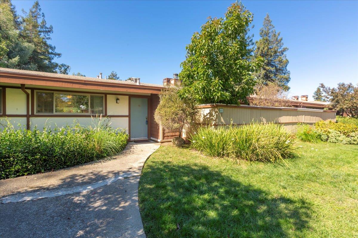 Rarely available, single story townhome style condo with no one above or below and a personal interior washer and dryer. The charming cottage features an open floor plan with a large living room with a corner tiled fireplace, vinyl plank floors, recessed lighting and wall to wall glass doors that open to a private and sunny patio / backyard. A spacious cook's kitchen with granite counters, stainless appliances and ample cabinet space. Generous size bedroom with wall to wall closets and plush carpeting. Desirable location within this well maintained complex complete with swimming pool, club house and EV charging stations. Convenient to downtown Mountain View, shopping, freeway and expressway access. This home has been well cared for and shows true pride of ownership.