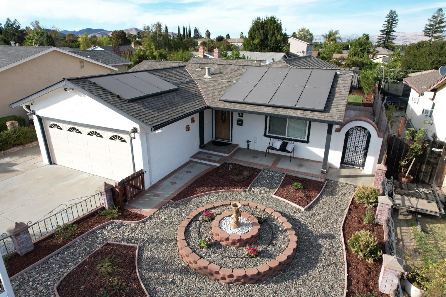 Welcome Home to this inviting 3-bedroom, 2-bath home nestled in a peaceful cul-de-sac in Gilroy located in South Santa Clara County. With over 1,400 square feet, this cozy residence is filled with skylights throughout, providing an abundance of natural light. This home features an updated kitchen that is perfect for family meals and gatherings. The entire property is complemented by charming Spanish touches throughout. Step outside to your own relaxing backyard oasis, complete with a built-in outdoor wood-burning oven ideal for memorable evenings with friends & family. Additional highlights include owned solar panels for energy savings and a security system for peace of mind. Conveniently located near local amenities and parks, this home truly offers a warm and welcoming retreat. Located with easy access for commutes, shopping, parks, and schools.