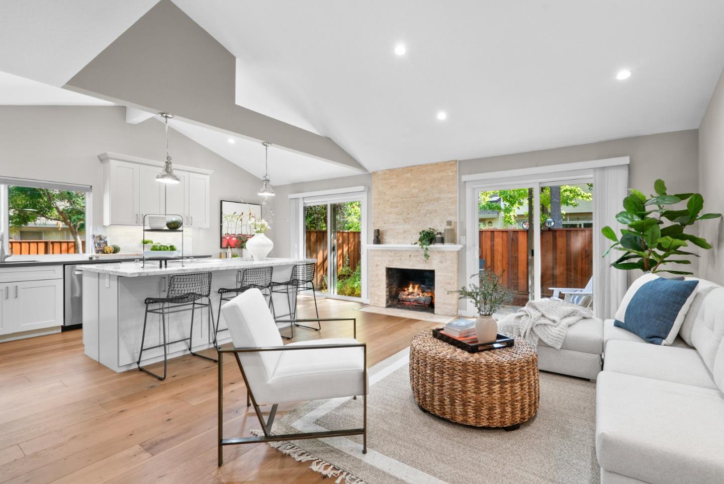Enjoy the comforts of this stunning, recently remodeled end-unit townhome with an open floor plan, located next to a large greenbelt in the sought-after Northpoint community. The split-level design offers vaulted ceilings, luxury wide plank engineered oak flooring, and abundant natural light throughout, enhanced by custom Levolor blinds. The living and dining area features a stone fireplace and two sliding doors that open to a private back patio. The gourmet kitchen boasts a center island, quartz countertops, stainless steel appliances, and ample cabinetry. The primary suite provides a peaceful retreat with a private balcony, large closets, and a luxurious upgraded ensuite. High-end upgrades include a complete HVAC system with variable speed for energy efficiency and water softening system. The second bedroom is equally inviting, boasting generous storage and modern finishes. Additional conveniences include an attached two-car garage with washer and dryer. Community amenities include pools, tennis courts, fitness center, children's play areas, and clubhouse. Located near top-rated Cupertino schools, Apple campuses, shopping, and with easy access to major freeways, this townhome offers both serene living and Silicon Valley convenience.